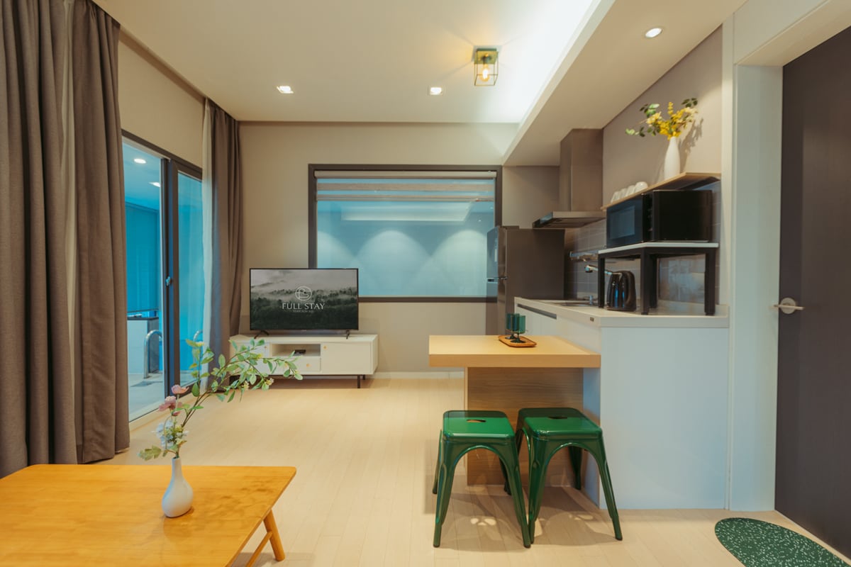 Przestronny prywatny ośrodek wypoczynkowy położony w spokojnej przyrodzie Gapyeong, oferujący idealne miejsce na niezapomniane chwile. Obudzisz się z ciepłym światłem słonecznym i zakończysz dzień pod niebem przepełnionym gwiazdami. Dzięki ponad 165 metrach kwadratowych przestrzeni wewnętrznej i ponad 1300 metrach kwadratowych na zewnątrz, idealnie nadaje się na rodzinne wypady, spotkania z przyjaciółmi i warsztaty. Przemyślane udogodnienia i ciepła gościnność czekają na Ciebie, dzięki czemu czas spędzony z bliskimi jest jeszcze bardziej znaczący i przyjemny.