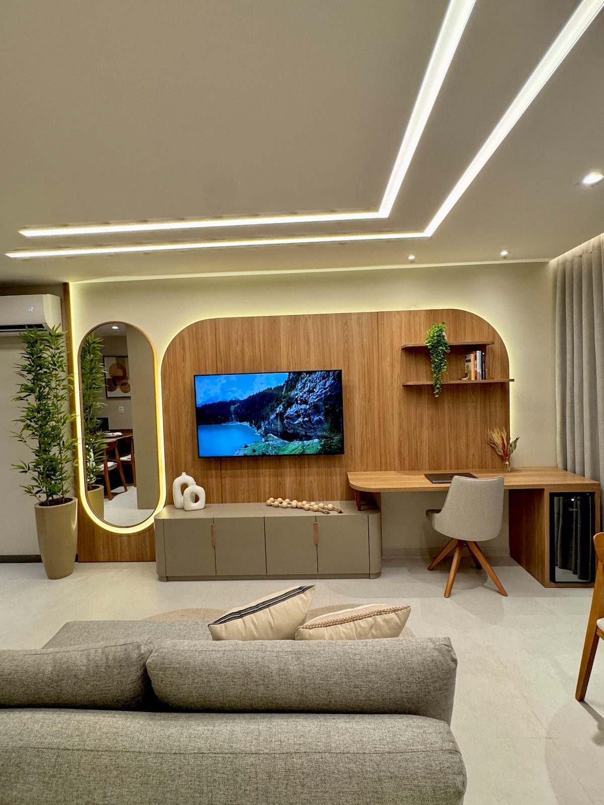 O espaço dispõe de um quarto com ar-condicionado, sala com TV e sofá cama, cozinha equipada, banheiro e varanda (sol da manhã, vista ampla). Toalhas de banho e roupa de cama de qualidade (Buddermeyer). Portaria 24h, elevador, garagem, sala fitness e lavanderia coletiva, mediante agendamento. Localização excelente, ao lado do Shopping Norte Sul e próximo a restaurantes, cafés e supermercado. Check-in simplificado. Guestbook para orientações e dicas locais. Comunicação rápida com anfitrião.