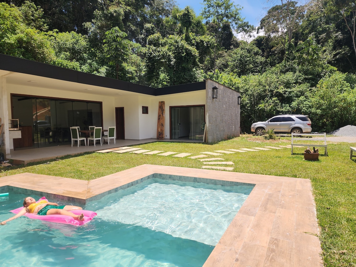 Piękny dom w stylu prowansalskim z prywatnym tarasem i basenem z widokiem na strumień. Dwa piękne apartamenty z łóżkami typu queen i podwójnymi, balkonem, klimatyzacją typu split i widokiem na jezioro. Antresola obok głównego apartamentu z pojedynczym łóżkiem. Pełna kuchnia, duży salon, przenośny grill! Idealne dla rodzin lub romantycznych chwil w Serra de Petrópolis. Twoje zwierzę jest mile widziane! Nie zezwalamy na organizowanie imprez na miejscu!