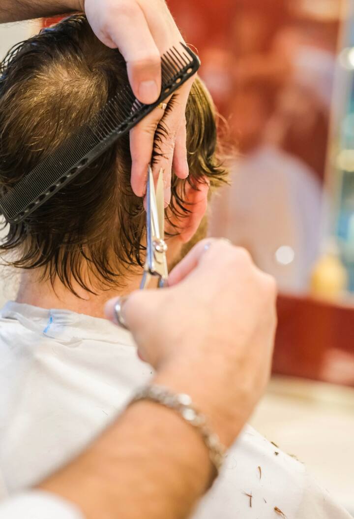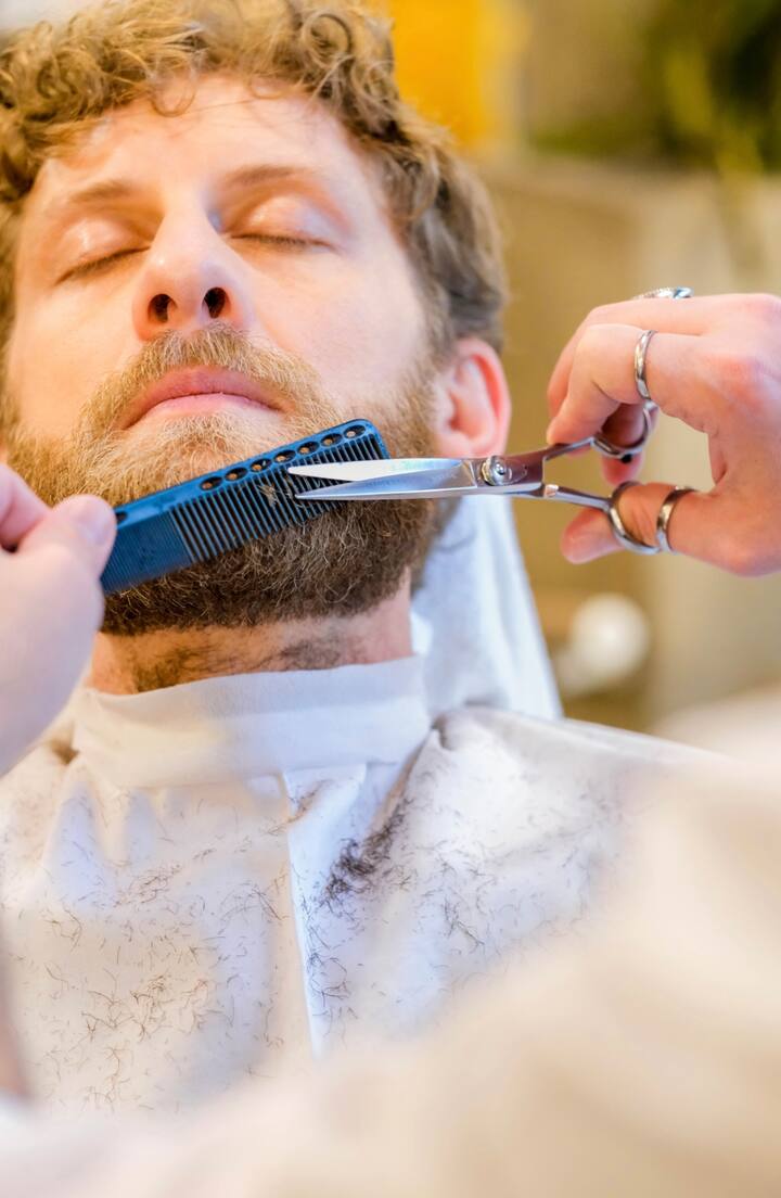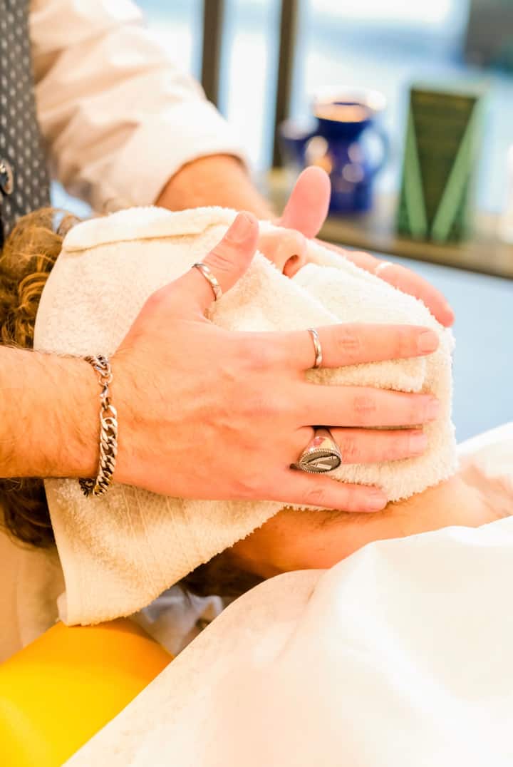 Sesja obejmuje przerzedzanie włosów nożyczkami lub maszynką, a także klasyczne fazy włoskiego rytuału, czyli nakładanie ciepłych ściereczek i wysokiej klasy produktów.