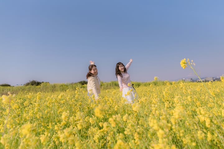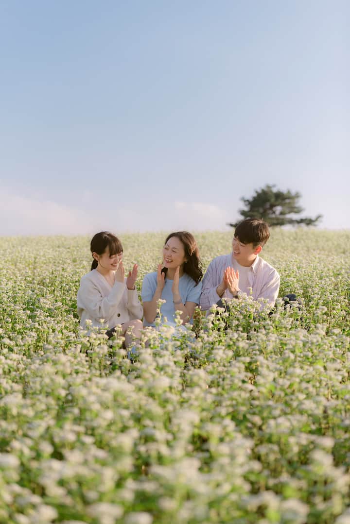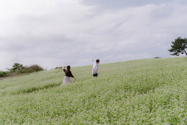 Nie przejmuj się, jeśli czujesz się nieswojo przed kamerą. Uchwyć swój najbardziej autentyczny uśmiech, który naturalnie pojawia się na Twojej twarzy pod wpływem wiatru na Jeju. Dzięki wyjątkowej „kolorystyce” Bright Day, której nie da się odtworzyć nigdzie indziej, sprawimy, że Twój zwykły dzień będzie jak scena z filmu. Możesz przyjść sama, ze swoim ukochanym psem, z mamą, a najlepiej z mamą i tatą na zdjęcie dla par!