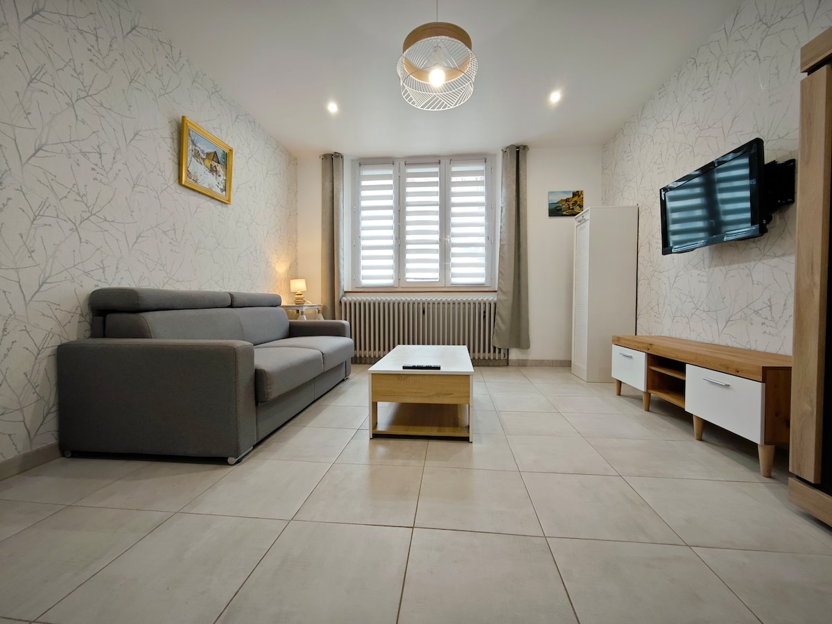 Zrelaksuj się w tym cichym i eleganckim miejscu. Apartament jest idealnie położony w samym sercu miasta Rethel, w pobliżu wszystkich sklepów (piekarnia, sklep mięsny, sklep spożywczy, apteka itp.) i 300 m od dworca kolejowego. 30 minut od Reims i Charleville-Mézières oraz 2 godziny od Paryża!!