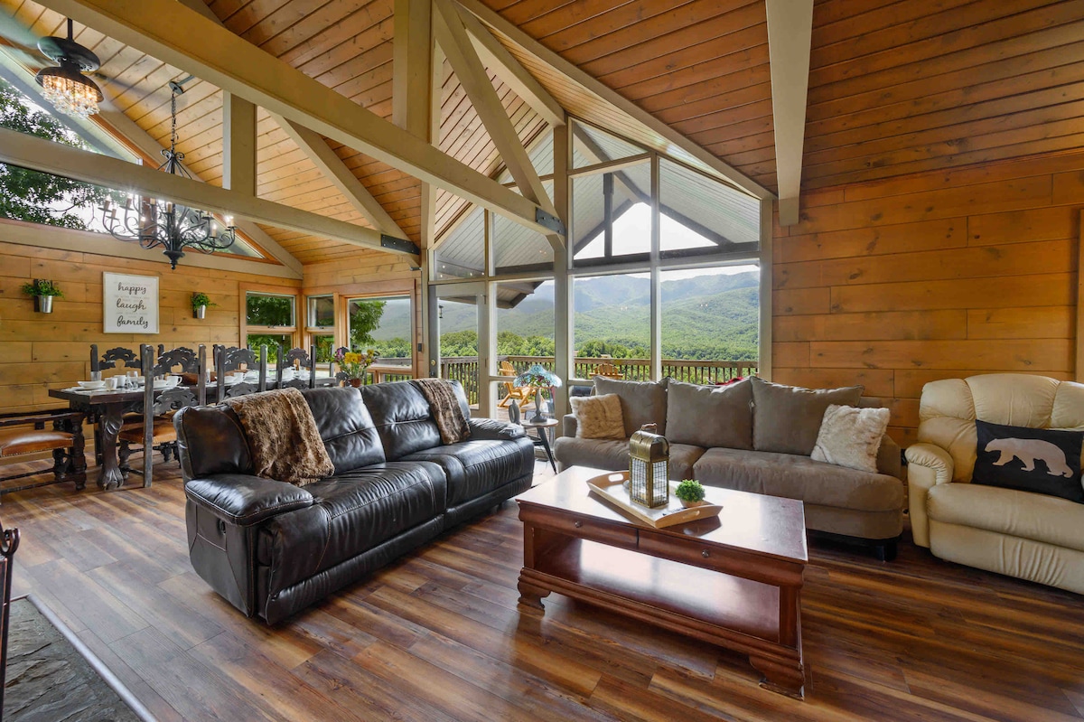 Poznaj niezrównany luksus w Windows to the Mountains, nowoczesnym cudzie położonym w Gatlinburgu z oszałamiającymi widokami na Leconte. Chalet oferuje taras na dachu z basenem, kinem i wspaniałymi udogodnieniami na świeżym powietrzu. Ciesz się w pełni wyposażoną kuchnią, przytulnym salonem z kominkiem i głównym apartamentem z łazienką przypominającą spa. Windows to the Mountains oferuje ekskluzywny wypoczynek dla wymagających gości, którzy szukają luksusowego wypoczynku.