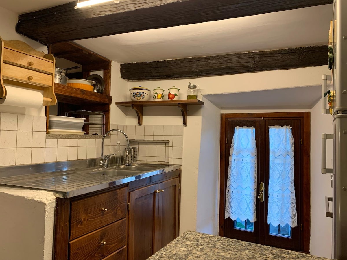 Domek z kamienia i drewna zbudowany na dwóch kondygnacjach, z dużym salonem, szklanym oknem, kanapą dla dwóch osób i łazienką z sauną; na drugim piętrze znajduje się sypialnia dwuosobowa. Na zewnątrz znajduje się duży ogród z werandą z grillem i drewnianym stołem. Miejsce to znajduje się na przyjemnych wzgórzach między Bellegra i Olevano Romano. Obecnie dodaliśmy dwa łóżka, ustawione we wspaniałej indyjskiej tipi dostępnej dla dwóch dodatkowych gości oprócz czterech.