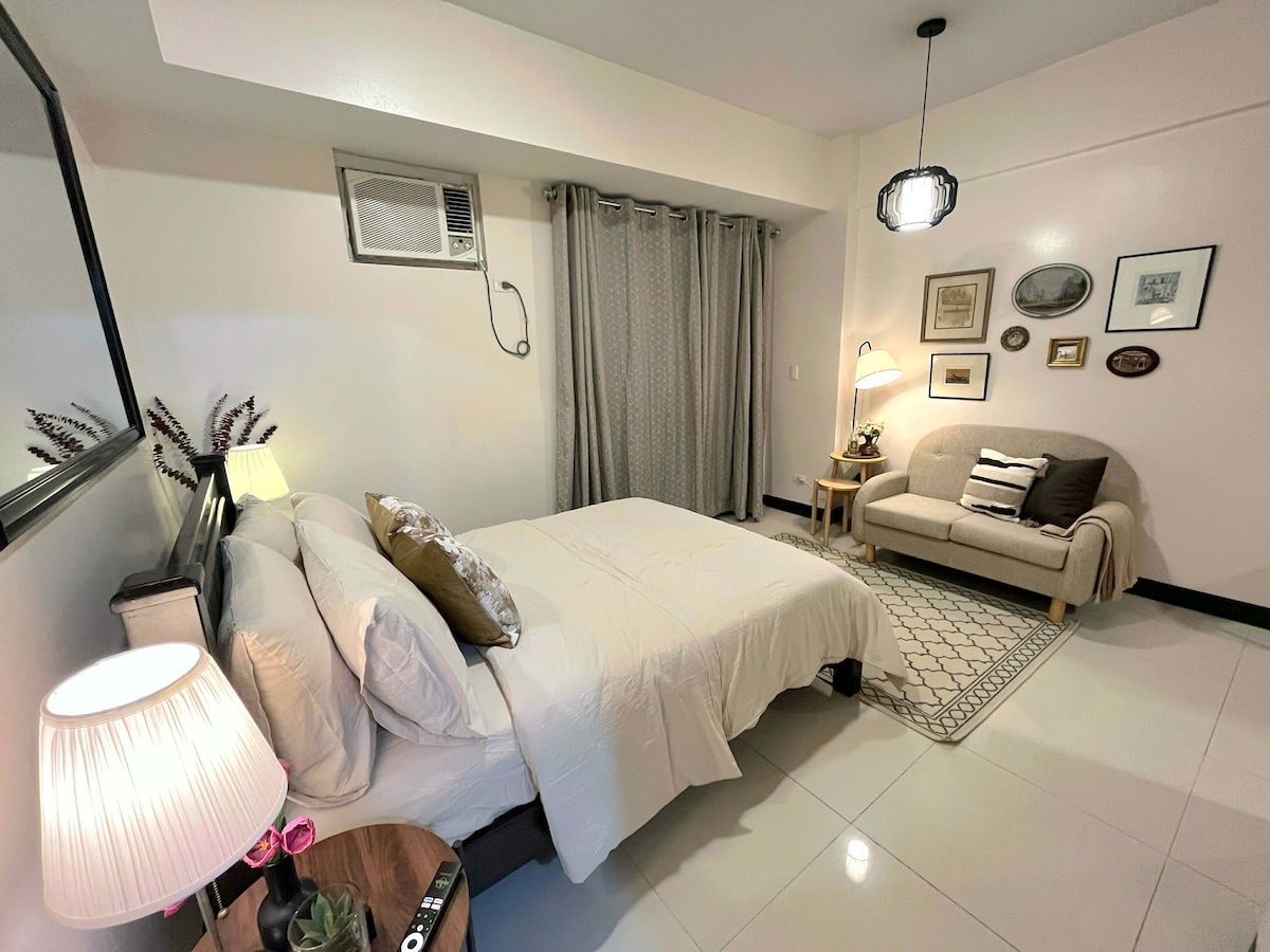 Poczuj luksus i spokój w naszym eleganckim, nowoczesnym mieszkaniu w Brixton Place, Pasig. Zaledwie 3-5 minut od BGC i 10-15 minut do Makati CBD. Ciesz się prywatnym balkonem obok sypialni w naszej przytulnej i wyrafinowanej przestrzeni. Idealne dla osób podróżujących w pojedynkę lub par szukających stylowego i spokojnego pobytu w pobliżu BGC. Wysokiej klasy udogodnienia, w pełni wyposażona kuchnia i atmosfera w stylu kurortu sprawią, że będziesz się czuł komfortowo i zrelaksowany. Z dostępem na dach, gdzie można podziwiać zapierające dech w piersiach widoki na panoramę miasta. Zarezerwuj teraz!