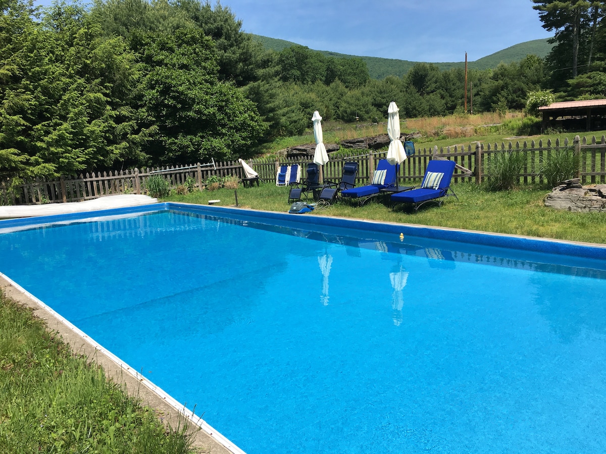Farm guesthouse w views, trails and pond.