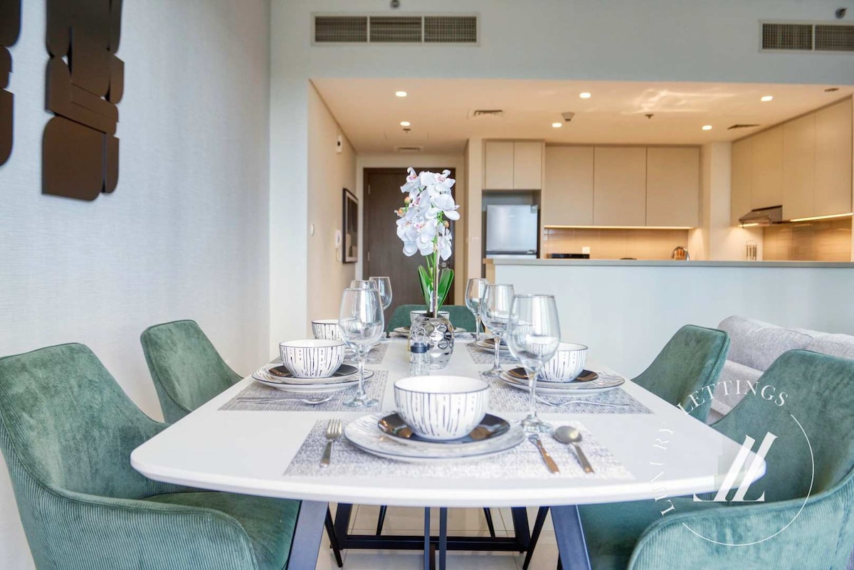 Zrelaksuj się w tym nowoczesnym apartamencie z 2 sypialniami w Binghatti Emerald, Jumeirah Village Circle (JVC), Dubaj, z jacuzzi, basenem, siłownią i bezpłatnym prywatnym parkingiem. Ciesz się rodzinnym układem z zamkniętą kuchnią, szybkim Wi-Fi i komfortem w stylu hotelowym. Spacer do kawiarni, sklepów i centrum handlowego z restauracjami i kinem. Idealne dla par, rodzin lub osób podróżujących służbowo. Można rezerwować pobyty miesięczne – napisz do nas, aby uzyskać specjalne stawki.