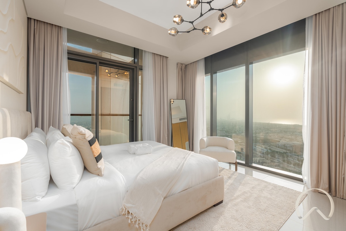 Wyjątkowy apartament oferujący idealne połączenie spokoju i tętniącego życiem miasta. Ten przestronny ośrodek oferuje zapierające dech w piersiach widoki na Dubaj, prezentując spokojny rezerwat przyrody i kultową panoramę. Nowoczesny, otwarty układ zaprojektowany z myślą o elegancji i komforcie z w pełni wyposażoną kuchnią. Sypialnia to prywatne sanktuarium z królewskim łóżkiem, wysokiej jakości pościelą z naturalnym światłem. Ekskluzywny dostęp do laguny i basenu VIP, w doskonałej lokalizacji, apartament oferuje łatwy dostęp do najważniejszych atrakcji Dubaju.
