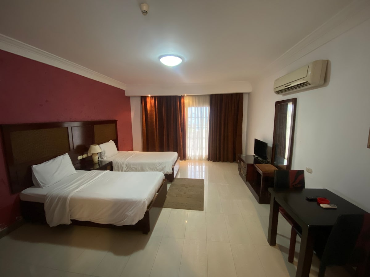 Fully equipped and furnished with 5 stars level, the apartment is located in a nice Tropitel Naama Bay Resort. It's just a few minutes walk from the famous Naama Bay shopping center, in a guarded quiet resort environment away from nightlife noise. The largest shopping mall Genena is 6 min away. WiFi is available. Renovated in 2022 with new furniture, refrigerator and new air conditioners. Video walkthrough (create the link yourself): QOTM6kawjOI Contact and book only through Airbnb.