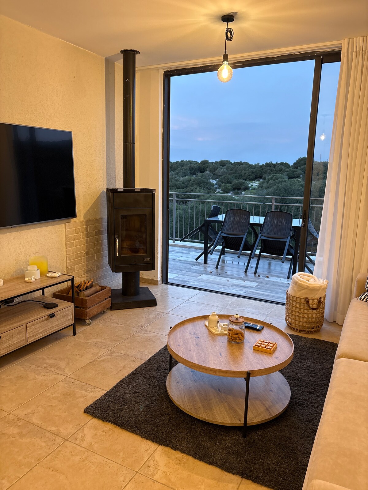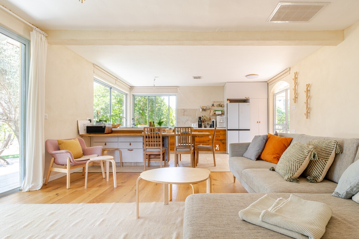 *Dla wszystkich zainteresowanych pobytem w tym szczególnym czasie wojny z Iranem… W domu jest schron i nie ma tu żadnych alarmów.* Jeśli szukasz spokojnego wypoczynku, bliskości natury i podziwiania widoków, to idealne miejsce dla Ciebie. Witamy. Dom jest całowany i wtapia się w las Beit Keshet. Tutaj możecie spędzać czas razem, przygotowywać sobie jedzenie i robić to, co kochacie, relaksować się na drewnianym balkonie, cieszyć się ciszą i dźwiękami lasu, popływać w basenie w upalne dni, ogrzać się przed kominkiem i spędzić czas w saunie w chłodne dni. * *Pamiętaj, że dom znajduje się w dzielnicy mieszkalnej, która zachowuje ciszę i przyrodę, jest to ważna wartość dla mieszkańców. * *
