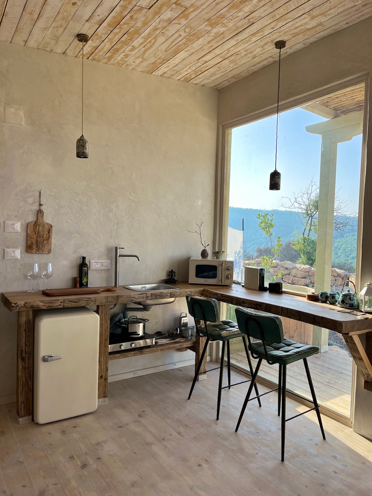 Zadbajmy o to, by wszystko było proste:) Nasza uroczo wyjątkowa chata znajduje się w Amirim, cichej wegetariańskiej wiosce obserwującej Galileę z jednego ze stoków. Jest ukryty w lesie i jest idealny dla osób szukających ciszy i izolacji. Dziewczyny i chłopaki, wszyscy powinniśmy mieć szansę zwolnić, ponownie połączyć się z naszym wewnętrznym głosem, dostroić nasze wibracje i, co najważniejsze, oddychać. Po to jest ta chata. Jest wysoce zalecany dla joginów, artystów, pisarzy, myślicieli i poszukiwaczy pokoju.