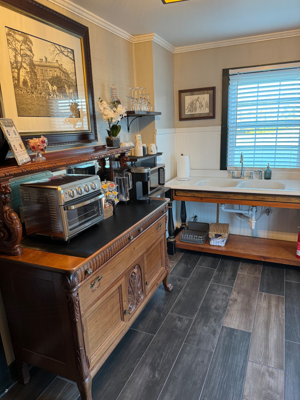 Ten uroczy i prywatny apartament z jedną sypialnią jest wyjątkowo położony na pięknej posesji otoczonej ogrodami, stawami i historią. Camden słynie z domów Antebellum, a z tego miejsca można dotrzeć pieszo do niektórych z jego najlepszych przykładów. Apartament jest przytulny z wygodnym łóżkiem typu queen size, łazienką z naturalnym drewnem i wanną/prysznicem na łapach oraz nowoczesnym systemem ogrzewania i chłodzenia bezkanałowego Mitsubishi. Prywatny taras z widokiem na zabytkowe boisko do polo.