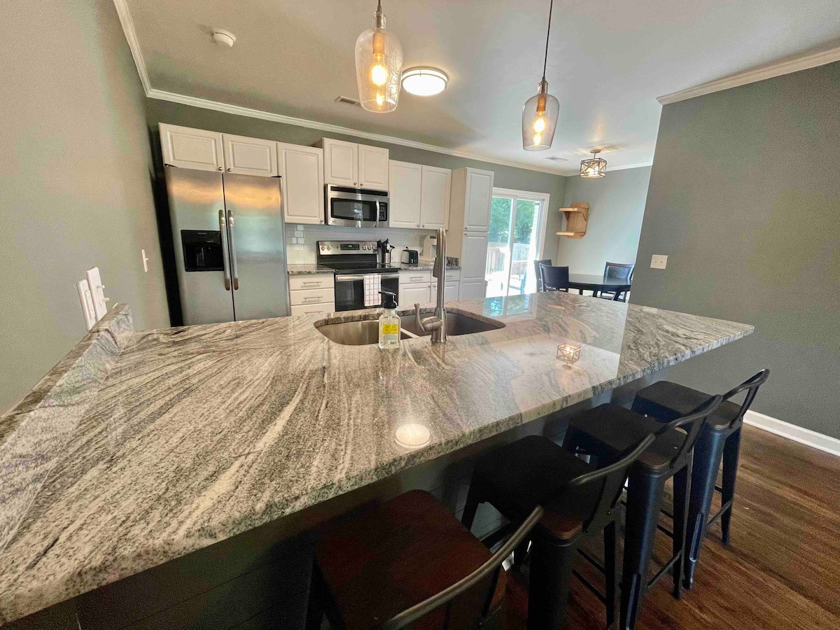 Welcome to our newly renovated 3 Bed, 2 Bath, home in Sumter. Our modern decor home has the following: - Master bdrm with King bed/ ensuite bath - Queen beds other rooms - Full equipped kitchen, coffee station - 65", 55", 43" TVs in rooms - Game Room, w/ pool table, table tennis, arcade games - Work area, wifi, 32" monitor, printer, adj height desk - Private backyard, BBQ grill ,gazebo, fire table, games. - Centrally located near Shaw AFB, Tuomey Hospital, food, parks and more