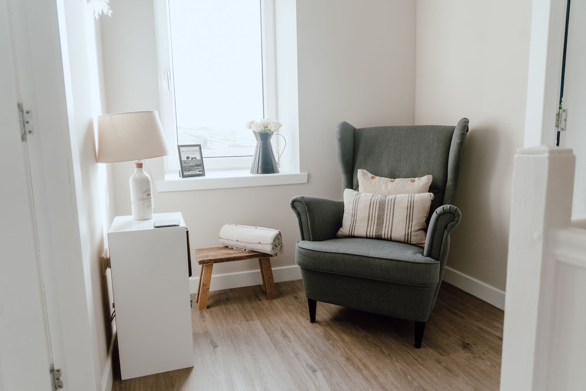 Nowoczesny domek z zapierającymi dech w piersiach widokami położony w South Bragar, <30 minut od Stornoway, Butt of Lewis i Calanais Stones, na dzikim i wietrznym zachodnim wybrzeżu. Idealne sanktuarium dla dwojga, oferujące przestrzeń, spokój i szansę na ponowne nawiązanie kontaktu z naturą. Obudź się przy śpiewie ptaków i panoramicznym widoku na Atlantyk, gdzie owce pasą się spokojnie dookoła. Duże okno jest idealne do obserwacji gwiazd, a nawet do podziwiania hipnotyzującego zjawiska Aurora Borealis.