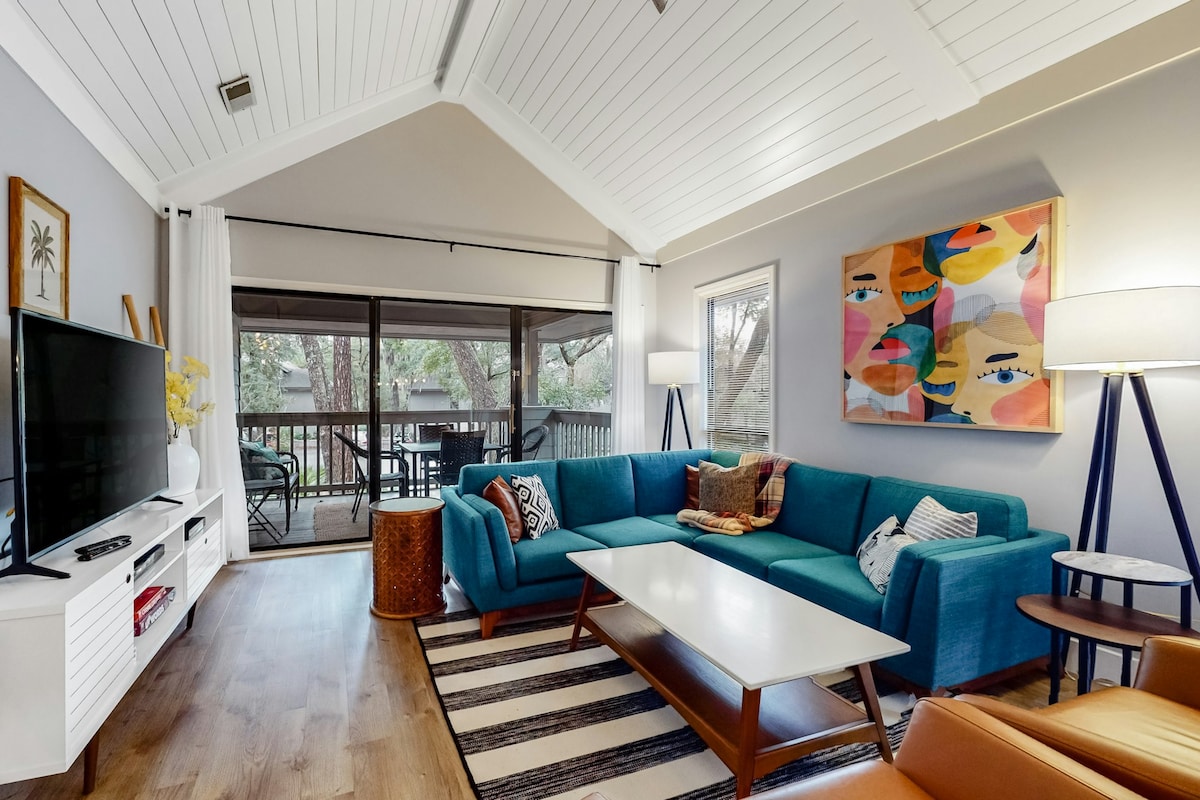 Pokochasz lokalizację tej przestronnej willi przyjaznej zwierzętom w Wildwood Spa, prywatnej małej okolicy, zaledwie dziesięć minut spacerem od Sea Pines Beach Club. Ten hotel typu Premier oferuje dwie sypialnie, dwie łazienki oraz część na poddaszu do czytania i relaksu lub dodatkowych miejsc do spania. Ta cicha, odosobniona jednostka zapewnia prywatność i spokój przez cały pobyt. Przyjazna dla zwierząt, ale czysta i odnowiona, ta centralnie położona willa jest doskonałą bazą wypadową na kolejną wyprawę na wyspę.