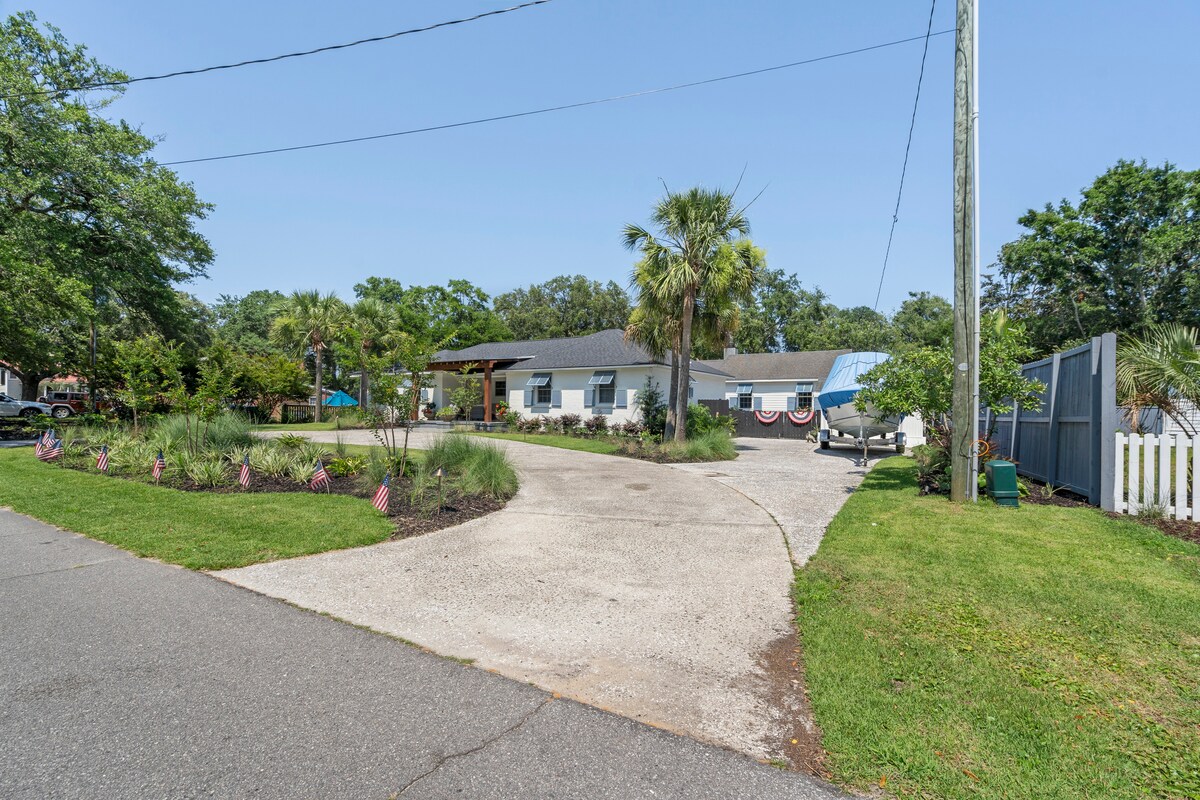 Twój własny, świeżo odnowiony domek w fenomenalnej lokalizacji! Spacer lub przejażdżka rowerem do Shem Creek i setek restauracji i barów. 3 minuty jazdy samochodem lub 10 minut jazdy rowerem do centrum Charleston. Prywatna ścieżka przez bagno do Shem Creek i Shrimpboats. Domek wyposażony w łóżko typu king, rozkładaną kanapę typu king, pełną kuchnię, łazienkę, dwa duże telewizory, pralkę i suszarkę, blat z stołkami barowymi i prywatne patio. 50 kroków do parku sąsiedzkiego! Zezwolenie nr ST260119 – Licencja nr 20121152