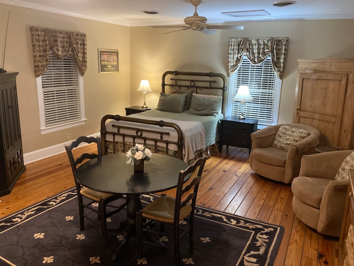 Experience Europe in the heart of the Shenandoah Valley! The Hideaway Suite’s Italian stone floor, wood beam ceiling, and natural brick setting evoke Florence and Venice. Indulge in a Scandinavian sauna or play British darts amid a London skyline! Enjoy Turkish rugs, relax in the garden, or take the very short walk to Woodrow Wilson Presidential Library, American Shakespeare Theater and downtown Staunton’s charming shops and restaurants. A truly unique space in a picturesque, historic location.