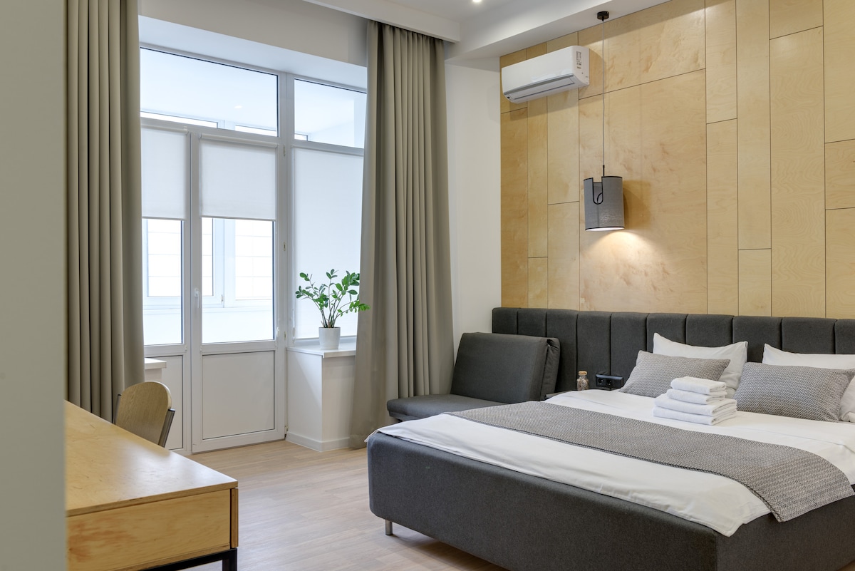 KONTRAKT to najlepszy hotel butikowy założony w 2021 roku. Znajdujemy się w samym sercu Podilu, a w pobliżu znajdują się główne atrakcje kulturalne Kijowa. Kościół Św. Andrew lub Muzeum Bulgakowa - czego dusza zapragomnia! Czy chcesz zrobić sobie przerwę od codzienności i spędzić trochę czasu w stolicy Ukrainy? Przygotowaliśmy dla Ciebie pokoje Deluxe z możliwością zakwaterowania maksymalnie 2 osób dorosłych i 1 małego dziecka, minibar i ulepszony hałas.
