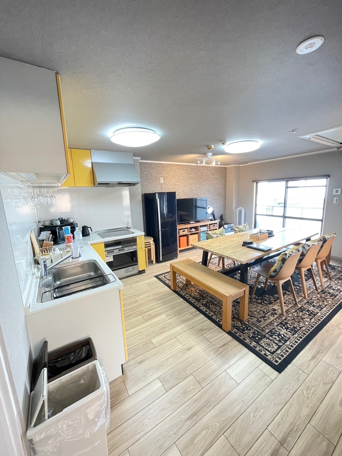 Newly built high-end B&B 2LDK ~ Maximum 6 people, the whole house area is about 75㎡ 5-minute walk from Keihan Railway "Shichijo" Station 10min by taxi from Kyoto St. ①JR - 1 hour 25 minutes by HARUKA > Kyoto Station ②JR-HARUKA 1 hour 25 minutes > Kyoto Station ③Take "City Bus 206" from Kyoto Station, get off at "Shichijo Keihan-mae" after 3 stops > walk for about 5 minutes Equipped with air conditioning, full kitchens, underfloor heating, drum-type washer-dryers, and free Disney+ & Netflix.