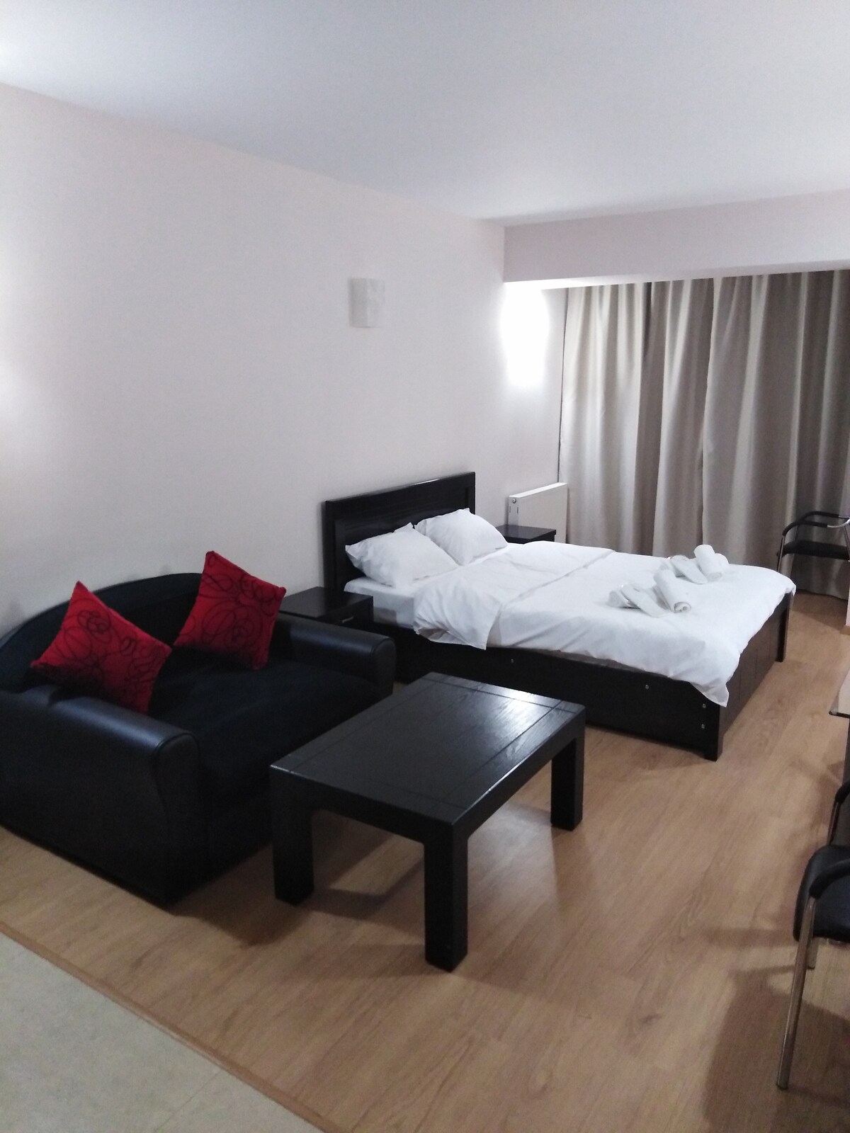 Ja, Roman, oferuję Ci przytulne studio w kompleksie Twins, New Gudauri. Do najbliższej windy linowej Zuma 250 m (idealna dla początkujących i dzieci), do gondoli Gudaura Gondola Lift - 350 m. Mieszkanie jest niedawno odnowione i ma wszystko, czego potrzebujesz do komfortowego pobytu. Samodzielne zameldowanie z zamkiem elektronicznym jest zapewnione. Do sklepów, restauracji, barów, basenu, bankomatu, placu zabaw 5 minut pieszo.