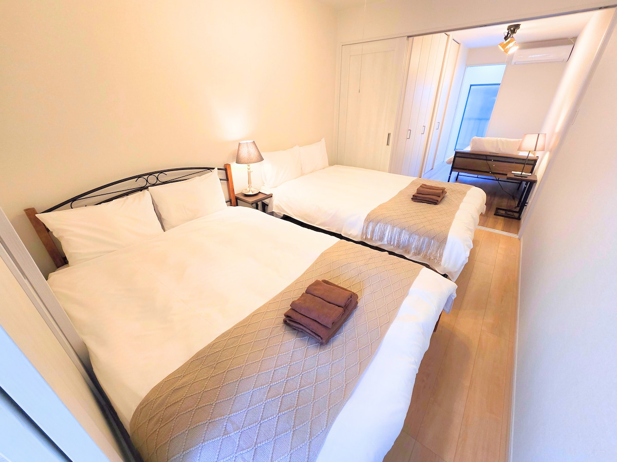 Jest to piękny, odnowiony pokój. Wszystkie łazienki, umywalki, toalety itp. są nowe. Mieszkanie ma około 40 metrów kwadratowych, salon oraz dwie sypialnie, jedną w stylu japońskim, drugą w stylu zachodnim, dzięki czemu jest idealne dla grup od trzech do pięciu osób lub rodzin. 30 sekund spacerem od wschodniego wyjścia stacji Shin-Osaka, można korzystać zarówno z linii JR, jak i metra, więc jest to dobre połączenie nie tylko z miastem Osaka, ale także z Kioto, Kobe i Narą.