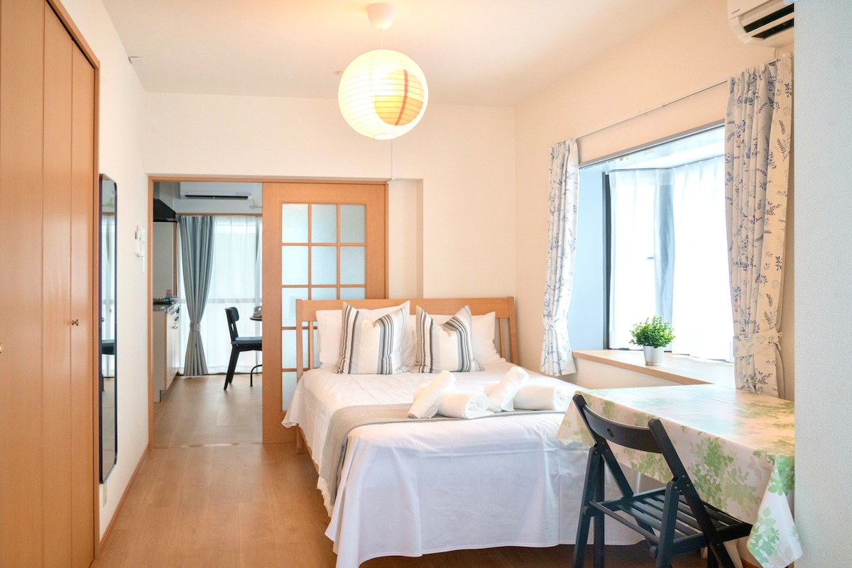 房源位置与周边环境: 房源位于新宿站生活圈内,但不在嘈杂、不宜居的歌舞伎町区域。步行至歌舞伎町约15分钟,可方便前往体验夜生活,但居住区域本身安静舒适。 步行约10多分钟可达新宿都厅展望台。 最近地铁出口步行约3–4分钟。 从JR山手线新宿站西口步行约8–10分钟即可到达。 从羽田机场、成田机场均有直达新宿的机场大巴。 高速大巴站步行至民宿约15分钟。 周边商业成熟,生活配套完善,餐厅、便利店、药妆店、超市等一应俱全,交通便利。 从车站步行至民宿途中会经过商业街,各类商铺与餐厅齐全;最后进入住宅小巷区域,闹中取静,夜晚相当安静,适合休息。 房间情况: 本房源于2025年年中完成重新装修,所有设备均为全新配置。 配有阳台,可在阳台吸烟(室内禁止吸烟)。 公寓楼无电梯,房间位于4楼,需要步行3段楼梯。 不适合携带沉重大型行李的客人,请提前考虑。