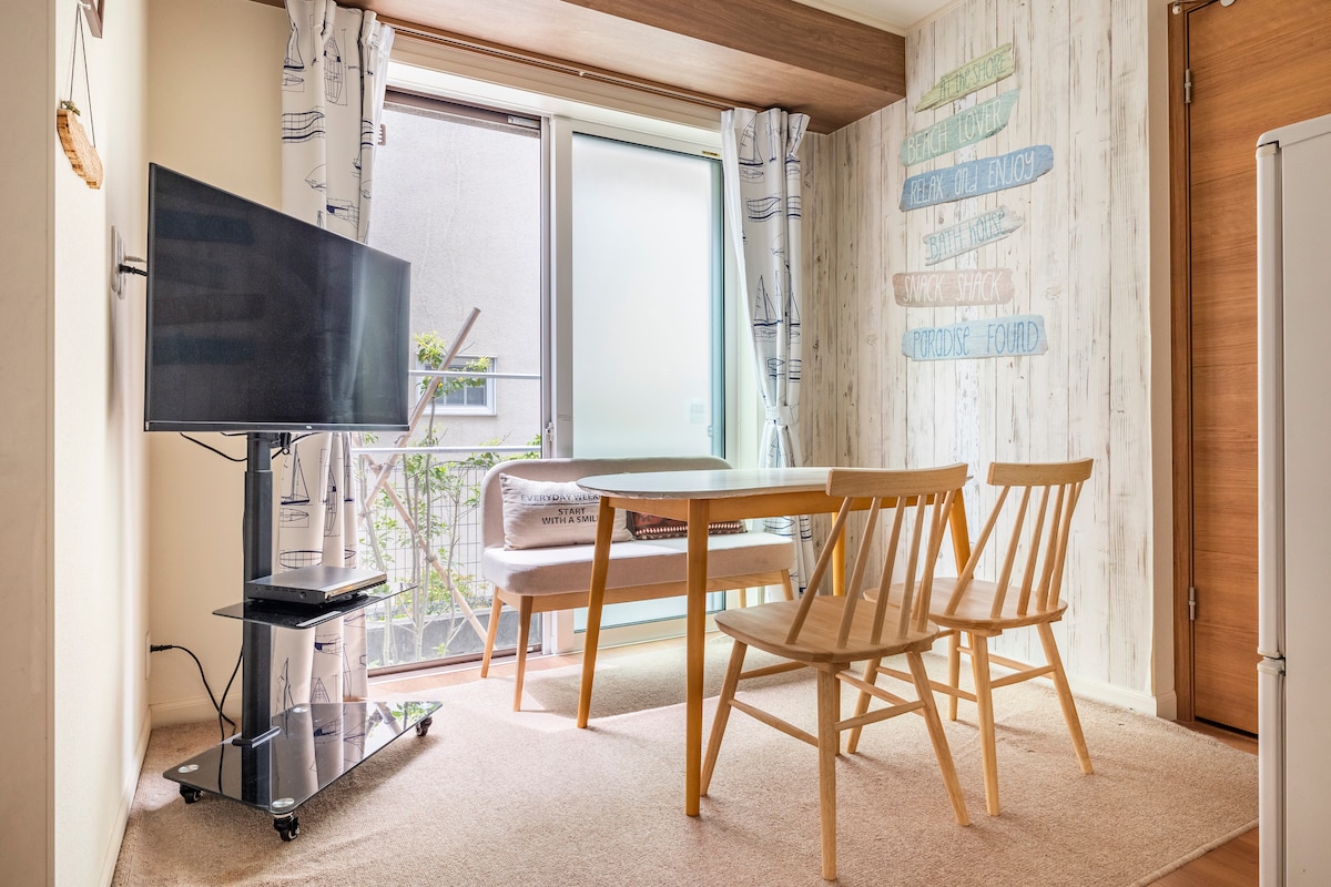 Furniture and electronics are all new, and you are sure to have a comfortable stay in a clean atmosphere. 【Location】 The apartment is located only 4-minute walk from Katase Enoshima Station, 3 minutes to the beach , 10-minute walk to Enoshima Station. Enoshima, Enoshima Aquarium, restaurants and convenience stores are within walking distance. Please feel like resident in Enoshima and find many wonderful experience staying at Sou!