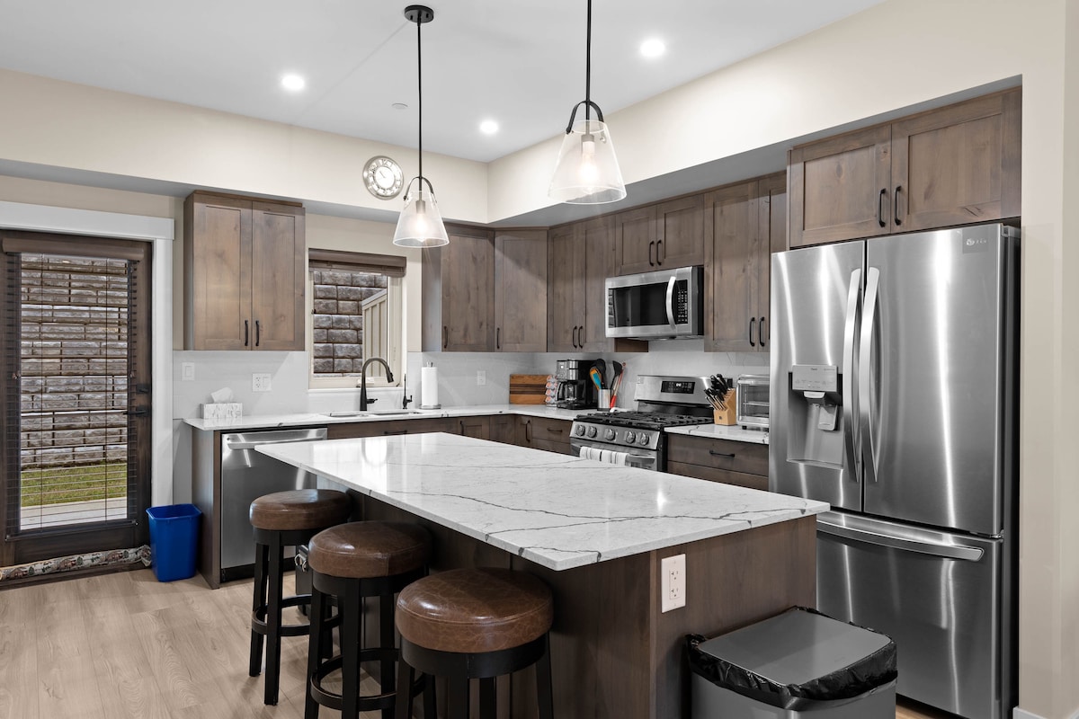 Nasz apartament z dwiema sypialniami i dwiema łazienkami oferuje łóżko typu king-size w głównej sypialni, łóżka piętrowe typu twin-over-queen w drugiej sypialni, ogrzewane podłogi w łazienkach i kuchni, w pełni wyposażoną kuchnię, przytulny kominek gazowy, telewizję kablową Full HD z 55-calowym telewizorem Smart TV w wielkim pokoju i 42-calowym telewizorem Smart TV w drugiej sypialni, bezprzewodowy internet, nową wannę z hydromasażem Jacuzzi J425, grill, pralkę/suszarkę i spektakularne widoki!