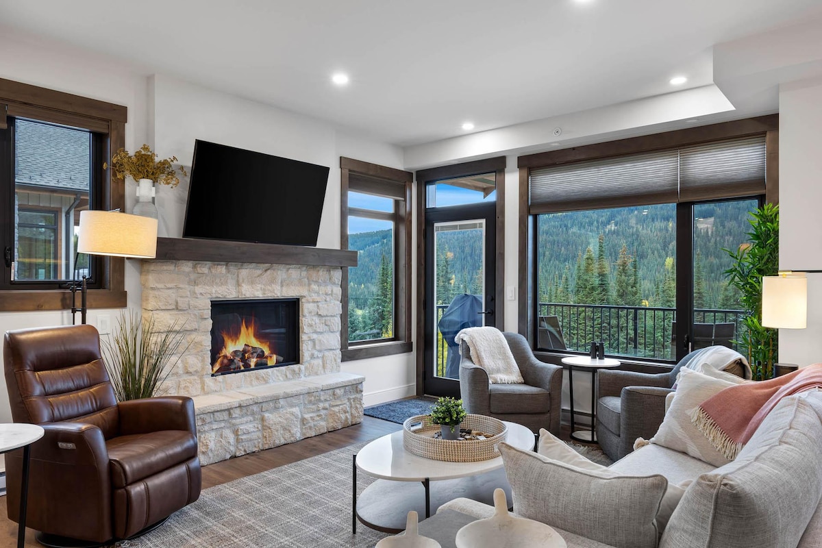 3 sypialnie, 2 łazienki, 9 miejsc noclegowych. Salon, jadalnia, kuchnia i sypialnie znajdują się na tym samym poziomie, z dużą ilością miejsca do przechowywania i szafą. W apartamencie znajduje się pralnia, 58-calowy telewizor, Wi-Fi, gry planszowe i prywatna wanna z hydromasażem na dużym patio z niesamowitymi widokami. Parking dla dwóch pojazdów – jeden w ogrzewanym garażu z ładowarką EV i jeden na podjeździe. Kompleks posiada dodatkowe miejsca parkingowe dla odwiedzających. Ogrzewany garaż wyposażony jest również w przechowalnię nart/deski oraz ogrzewacze butów/rękawic.