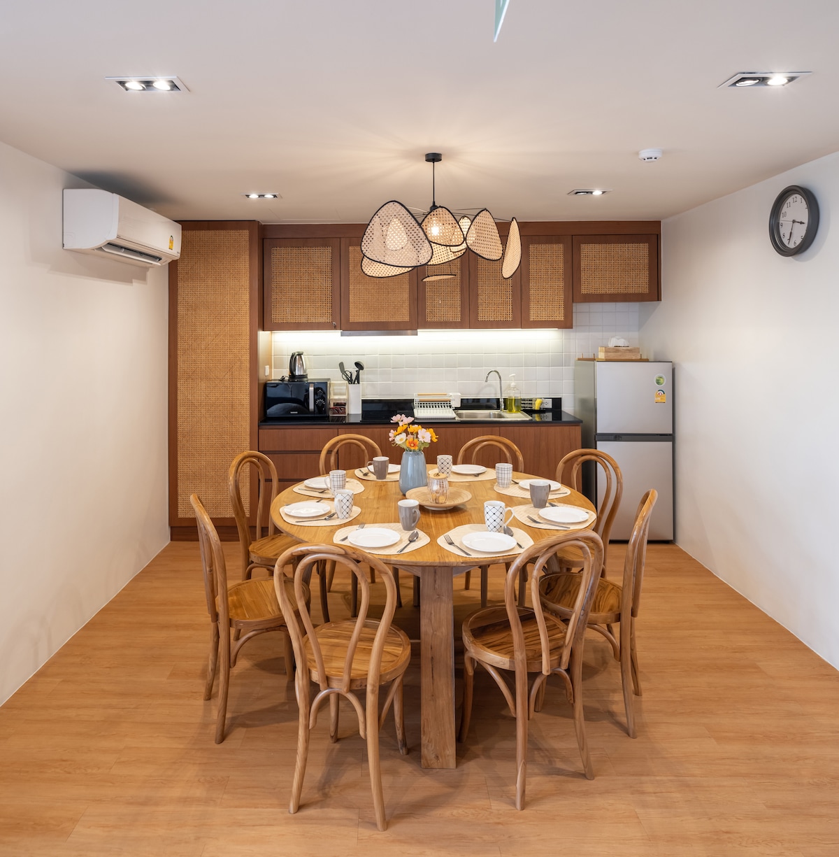 Witamy w Twoim domu z dala od domu w samym sercu Bangkoku! Ten przestronny szeregowiec z 4 sypialniami i 3,5 łazienki jest przeznaczony dla rodzin, dużych grup i miłośników zwierząt szukających wygodnego i stylowego pobytu. Dzięki idealnemu połączeniu nowoczesnej elegancji i tajskiego uroku, ten dom oferuje wszystko, czego potrzebujesz do relaksującego wypoczynku w jednym z najbardziej ekscytujących miast na świecie. Skorzystaj z bezpłatnego transferu lotniskowego w jedną stronę przy rezerwacji pobytu na co najmniej 4 noce!