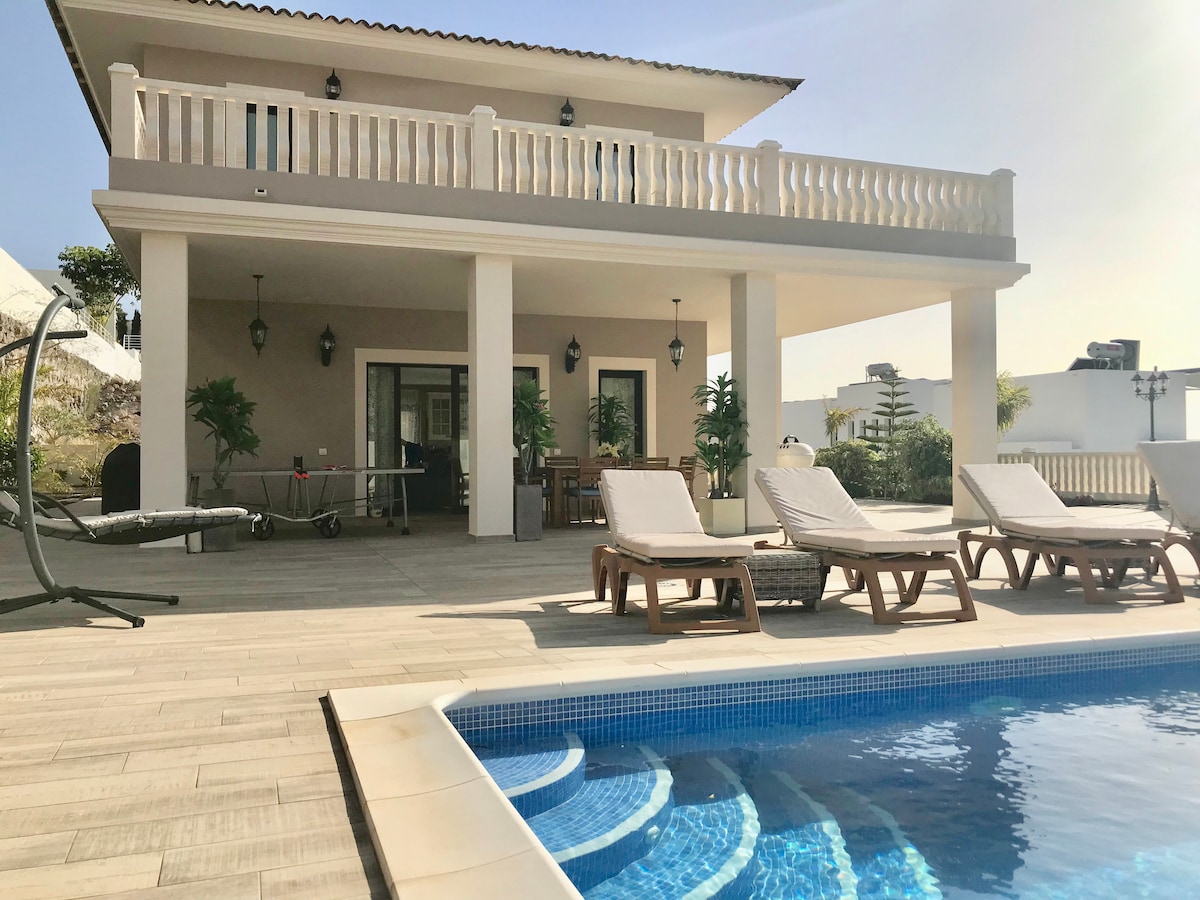 Bardzo ładna willa z widokiem na „Costa Adeje” i Ocean Atlantycki. Willa posiada dwie sypialnie na piętrze, jedną z łazienką, oddzielną łazienkę z pralką i sauną. Kolejna sypialnia, na parterze, toaleta, salon ze stołem jadalnym, w pełni wyposażona kuchnia. Willa posiada również własny basen, który można podgrzewać, dostępny jest stół do tenisa stołowego. Klimatyzację można zarezerwować za 10 euro dziennie w lecie