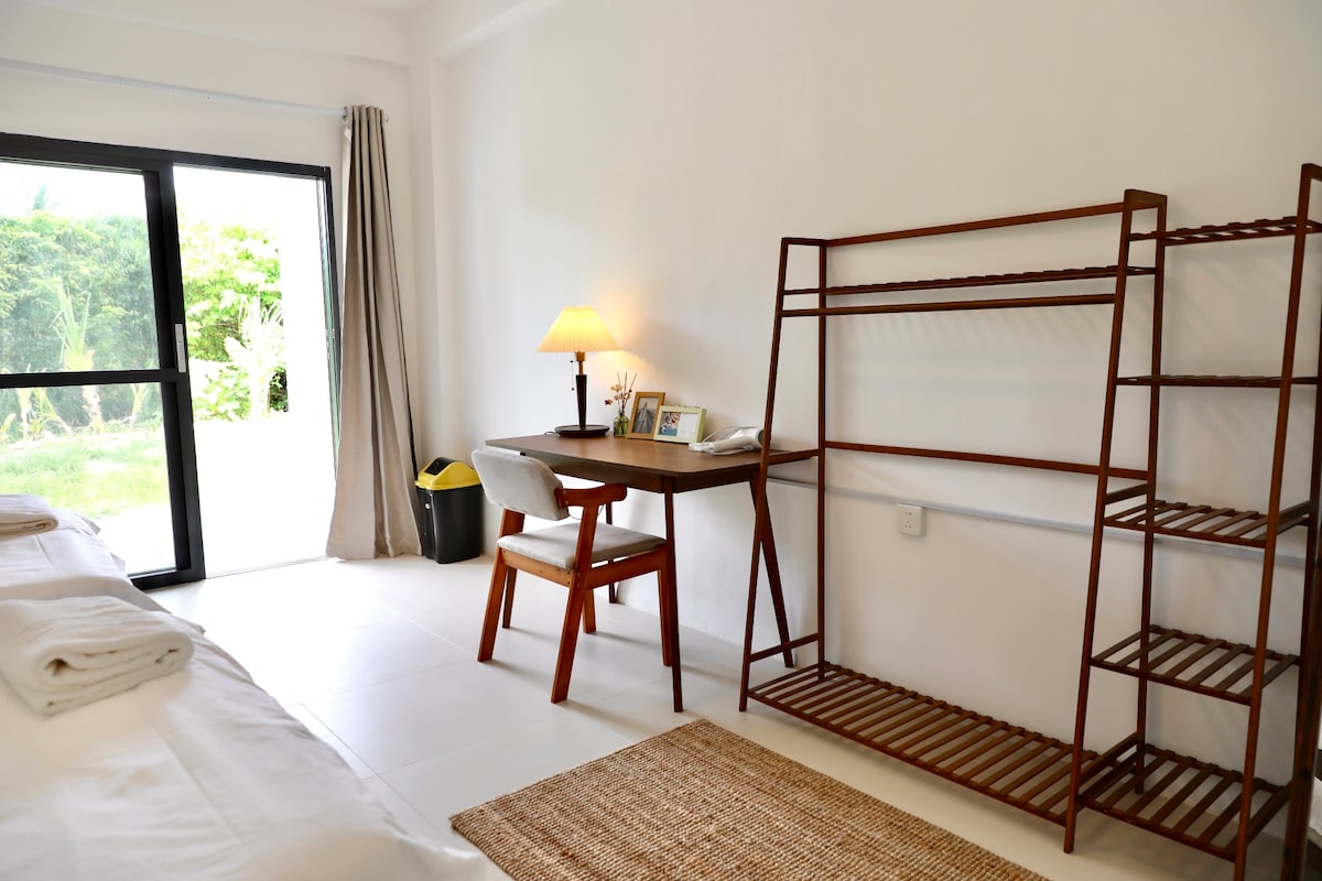 Ta prywatna willa z 1 sypialnią, położona w spokojnym, zielonym zakątku Siargao, oferuje idealny wypoczynek dla par lub samotnych podróżnych, którzy szukają spokoju, ale nie zbyt daleko od akcji. Położona zaledwie 10 minut od tętniącego życiem miasta General Luna i tylko 2 minuty spacerem od dziewiczej białej piaszczystej plaży, ta urocza willa łączy prywatność, komfort i wygodę w jednym spokojnym otoczeniu.