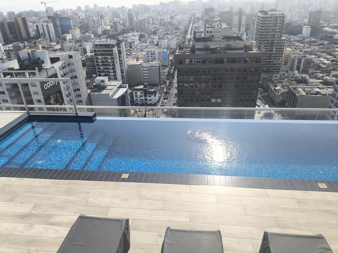 **Nowe mieszkanie. Najbardziej centralna część miasta, kilka kroków od San Isidro** W pełni wyposażone, piękne wspólne przestrzenie, takie jak siłownia, taras, grille na dachu, spektakularny widok. Centralna lokalizacja, idealna do podróżowania do Miraflores, Barranco, centrum Limy. W pobliżu centrów handlowych, lokali rozrywkowych i restauracji. 8 piętro nowoczesnego 25-piętrowego budynku, z Wi-Fi. W pełni wyposażona kuchnia, łazienka i pokój z łóżkiem typu queen. Wejście z kodem i inteligentnym zamkiem