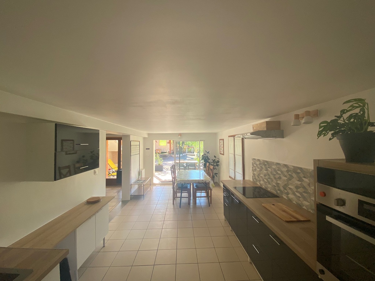 Zaledwie kilka kroków od Annecy, pół godziny od pierwszych tras narciarskich, zapraszamy do korzystania z uroków i atrakcji górskich: wędrówek, jazdy na nartach, wędkowania, pływania, jazdy na rowerze... lista jest długa. W pobliżu wszystkich udogodnień. Położony między lasem a górą Mandallaz, apartament oferuje dużą przestrzeń mieszkalną (95 m²). W ciepłe dni można korzystać z zestawu mebli ogrodowych, tarasu i strefy grillowej, a zimą delektować się lokalnymi specjałami, które rozgrzeją Cię.