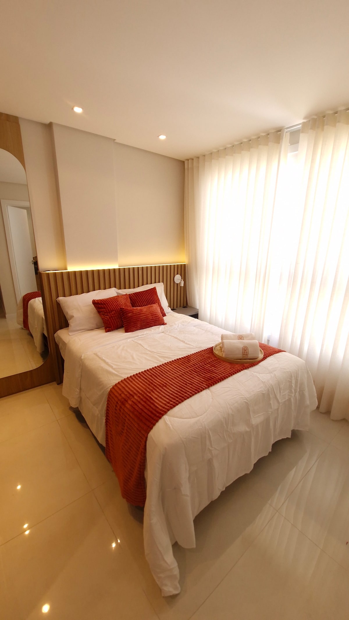 Acomodação NOVA, ideal para casais que desejam relaxar e aproveitar um ambiente encantador, com acesso à Lagoa da Ibiraquera. Somos um residencial tranquilo, pensado para oferecer conforto, sossego e contato com a natureza. Para nos conhecer melhor, acompanhe nossas redes sociais: @santuavillage. Obs.: Os apartamentos possuem o mesmo padrão e layout, podendo variar apenas nas cores.
