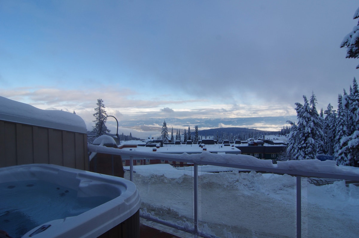 Położony w Silver Star Resort na szczycie pięknej góry Silver Star w Vernon, BC Kanada... z balkonu apartamentu, patrzysz prosto w górę na stok narciarski Silver Queen... możesz również zobaczyć tube town i wejście na szlak biegowy... załóż narty tuż za drzwiami szatni i jedź bezpośrednio do wyciągu krzesełkowego, a stamtąd możesz dostać się do dowolnego stoku narciarskiego na górze... kiedy skończysz, wracasz na nartach prosto do drzwi szatni.