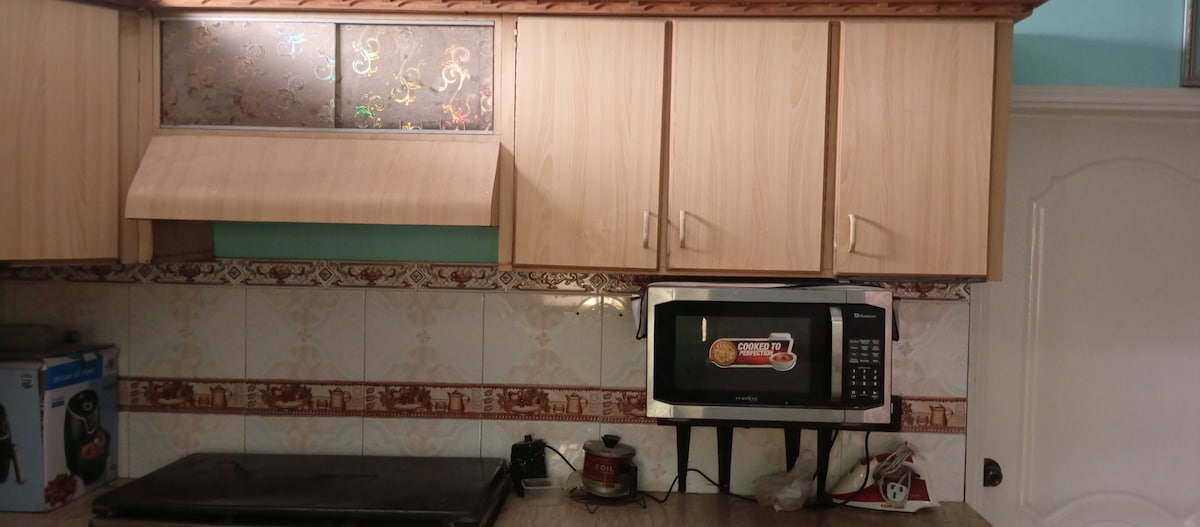 Witamy w naszym spokojnym bungalowie z 2 sypialniami w Gulistan-e-Johar – zaledwie 10 minut od lotniska w Karaczi! Idealny dla rodzin, osób podróżujących służbowo lub na weekendowe wypady, nasz w pełni prywatny dom łączy komfort, bezpieczeństwo i lokalny styl. 🏠 Położony w zamkniętej społeczności – bezpieczny i cichy ❄️ 2 silne klimatyzatory ⚡ Generator awaryjny – brak obaw o odciążenie sieci 🌐 Szybkie Wi-Fi 🛏️ 2 pełne sypialnie (łazienki przy pokoju) 🛋️ 1 salon (trzeci pokój) zawiera sofę + stół jadalny dla 6 osób 🍽️ W pełni wyposażona kuchnia