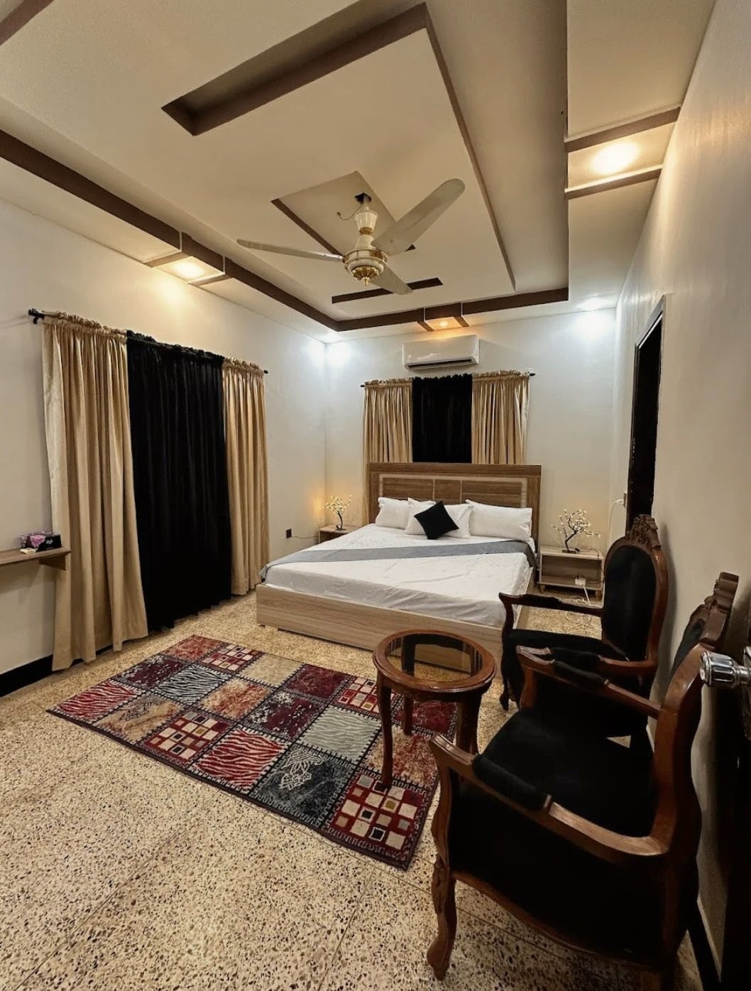 Welcome to our premium guest houses in Karachi — designed for travelers who value comfort, privacy, and a peaceful stay. We provide accommodation in multiple prime locations across the city, based entirely on your preference and convenience. Whether you are on a business trip, traveling with family, or looking for a short-term stay, our fully furnished rooms offer a relaxing and comfortable experience. • No dating couples are allowed. • No parties or alcohol consumption on the premises.