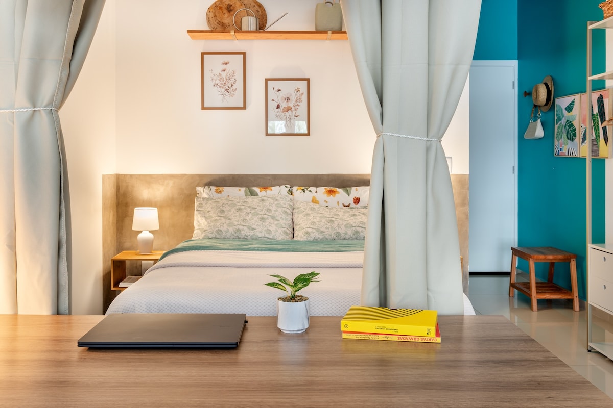 „Przyjedź do Refúgio do Ermitão, ekskluzywnej oazy położonej w Morro da Ferrugem, otoczonej spokojnym lasem i z przepięknym widokiem na zachodzące słońce nad laguną. Idealne dla osób poszukujących spokoju, z dala od ruchu, ale wystarczająco blisko plaży i centrum (zaledwie 600 metrów). Ciesz się szumem drzew i śpiewem ptaków w spokojnym otoczeniu. Korzystaj z nowoczesnych udogodnień. - Klimatyzacja - Telewizja kablowa - Internet światłowodowy 600 MB - Podgrzewane wanny