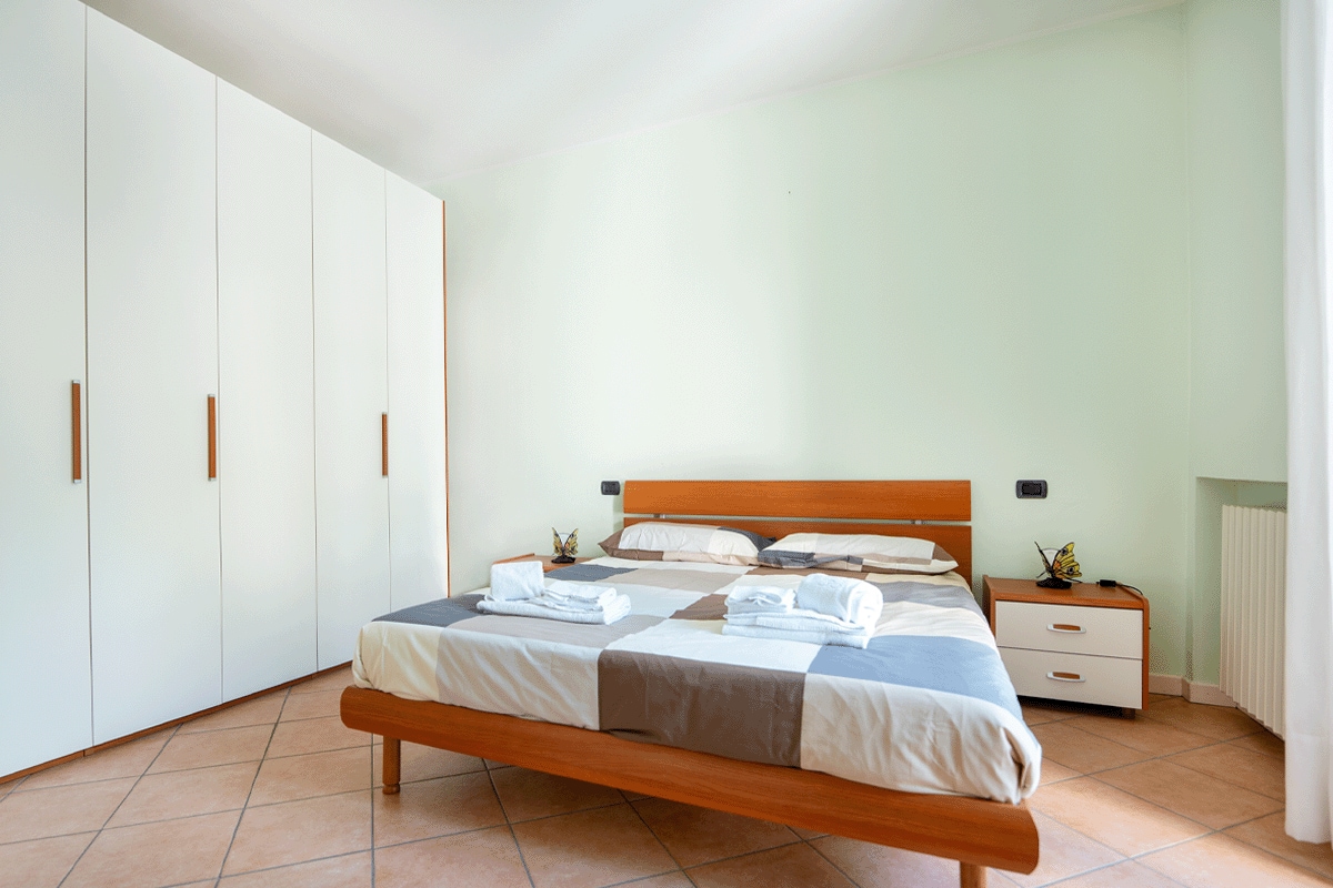 Mieszkanie na drugim i ostatnim piętrze znajduje się w otoczeniu dużego ogrodu i basenu. Z pięknych francuskich drzwi salonu można podziwiać WYJĄTKOWY widok na jezioro, a taras pozwoli Ci cieszyć się posiłkami w spokoju. Apartament wyposażony jest w klimatyzację, może pomieścić do czterech osób, sypialnię z podwójną z tarasem, łazienkę, aneks kuchenny, salon z rozkładaną sofą. Strategiczna lokalizacja. Dostępnych jest 5 rowerów Miejsce parkingowe na świeżym powietrzu