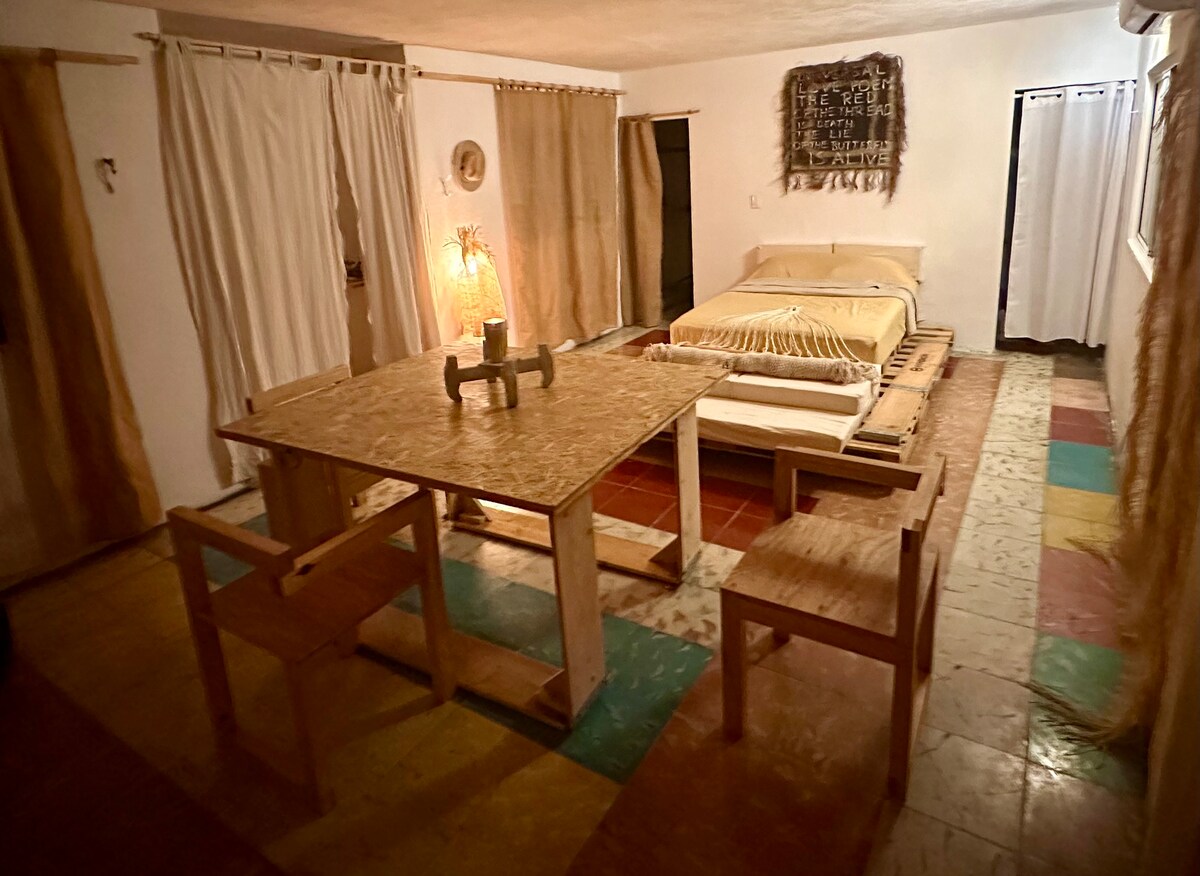 Sisal to piękna plaża położona 45 minut od Meridy która zachęca do relaksu, dzięki spokojowi swoich plaż, zielonemu morzu i białym piaskom, z bryzą, która zachęca do odpoczynku. Możesz cieszyć się wschodem i zachodem słońca nad brzegiem morza. Wieczorem możesz cieszyć się gwiaździstą nocą i słuchać szumu morza. Widok na ocean. Oba pokoje są klimatyzowane.