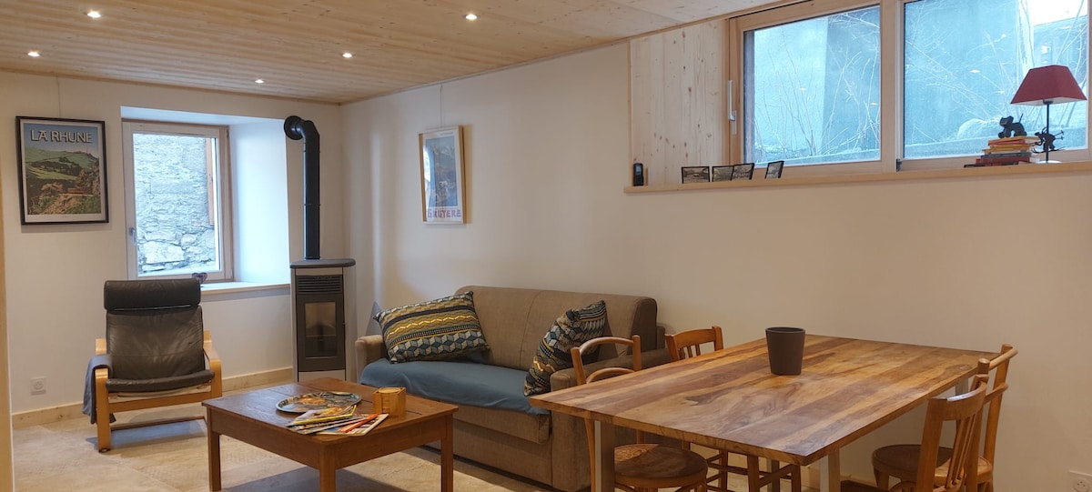 W Szwajcarii, w małej wiosce Leysin, w kantonie Vaud, apartament-studio na parterze domku, 2 pokoje 40 m2 z Wi-Fi, pokój dzienny, łazienka z prysznicem, kącik z rozkładaną sofą, kuchnia z indukcją i stół bilardowy. Oddzielne wejście, taras o powierzchni 15 m2 z widokiem na równinę Rodanu i Dents du Midi, miejsce parkingowe przed domkiem. Położony na wysokości 1300 m n.p.m., 300 metrów od dworca kolejowego i przystanku autobusu wahadłowego dojazdu do stoków narciarskich i wycieczek pieszych.