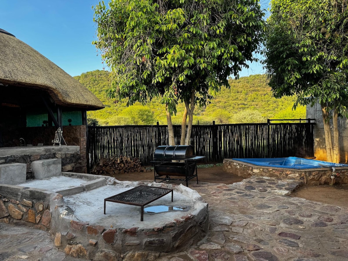 Country living with all the amenities you will enjoy in the city. A secure thatch chalet build from rock. Situated on a 21ha bush veld farm. Lots of bird life Impala, Blesbok and giraffe roaming around. 1 Bedroom with queen size bed and bathroom on suite. Open plan living area with fully equipped kitchen dining room and lounge with queen size double sleeper couch and Dstv. Cool veranda amongst trees. Beautiful terraced garden with (boma) barbecue area. Under cover parking. Pool recently added.