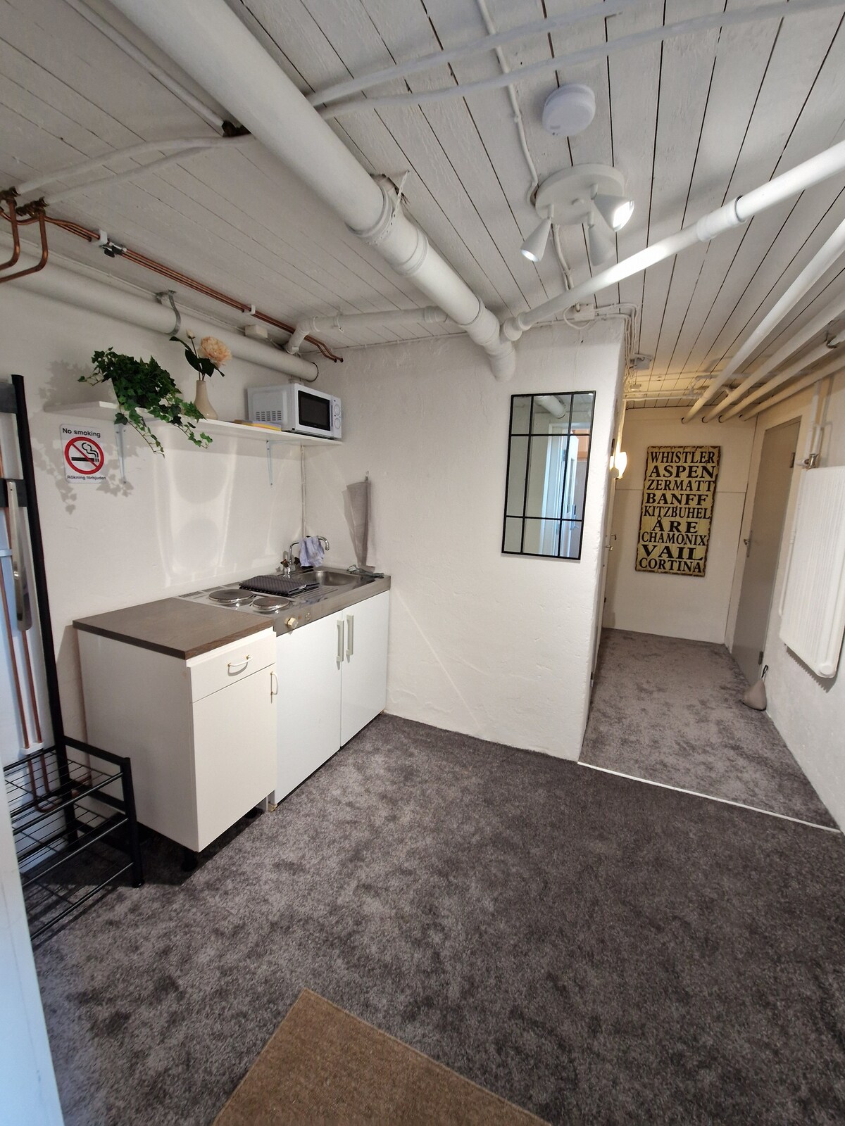 Zapraszamy do pobytu w prywatnej części w jednej połowie nowo wybudowanej jednopiętrowej willi z własnym wejściem. Dom znajduje się w przyjaznej dzieciom okolicy w pobliżu przyrody, około 10-15 minut jazdy samochodem od centrum miasta Skellefteå. Ja i moi dwaj synowie mieszkamy w drugiej części willi. Najbliższy przystanek autobusowy około 800 metrów. Sklep spożywczy, pizzeria, siłownia, basen na świeżym powietrzu, apteka około 2 km