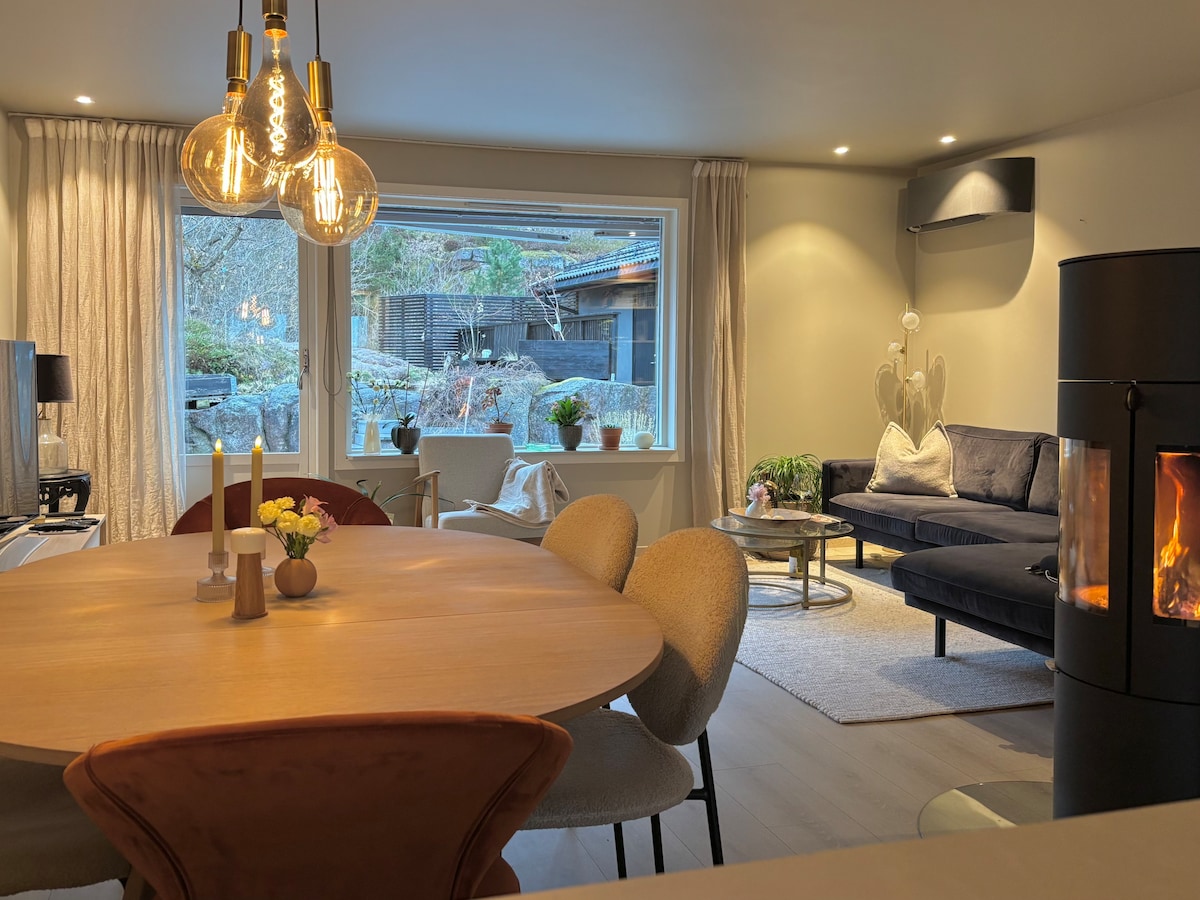 Stylowy dom szeregowy na trzech poziomach | 2,5 łazienki | prywatne patio! Nowoczesna, minimalistyczna, nad rzeką Ljanselva, w środku Mortensrud i Hauketo. Około 20 minut od sentum zbiorowym i 45 minut od lotniska (sprawdź trasy nr) Dom posiada 3 sypialnie, kuchnię, salon, stały garaż z możliwością dodatkowego miejsca parkingowego. Łóżka: 180 cm, 150 cm i rozkładana sofa 120 cm. Dla 7 osób: dodatkowe łóżko dla gości zostanie przygotowane w salonie. Zapewniamy pościel i ręczniki Poczuj się jak w domu, ale traktuj nasz dom ładnie!