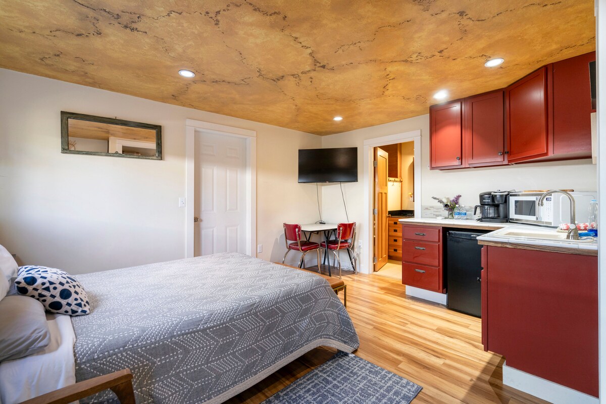 The Lucky 13 Studio is a newly renovated, modern space that is conveniently located near the heart of the city of Eugene! This 230 square foot studio/tiny home comfortably sleeps 1 or 2 guests and is close to restaurants, shops, parks and the University of Oregon. It is within walking distance to several wonderful eateries including; Laughing Planet, Falling Sky Delicatessen, Sweet Life and Tacovore . You'll find our studio to be comfortable and cozy with all the amenities you'll need!