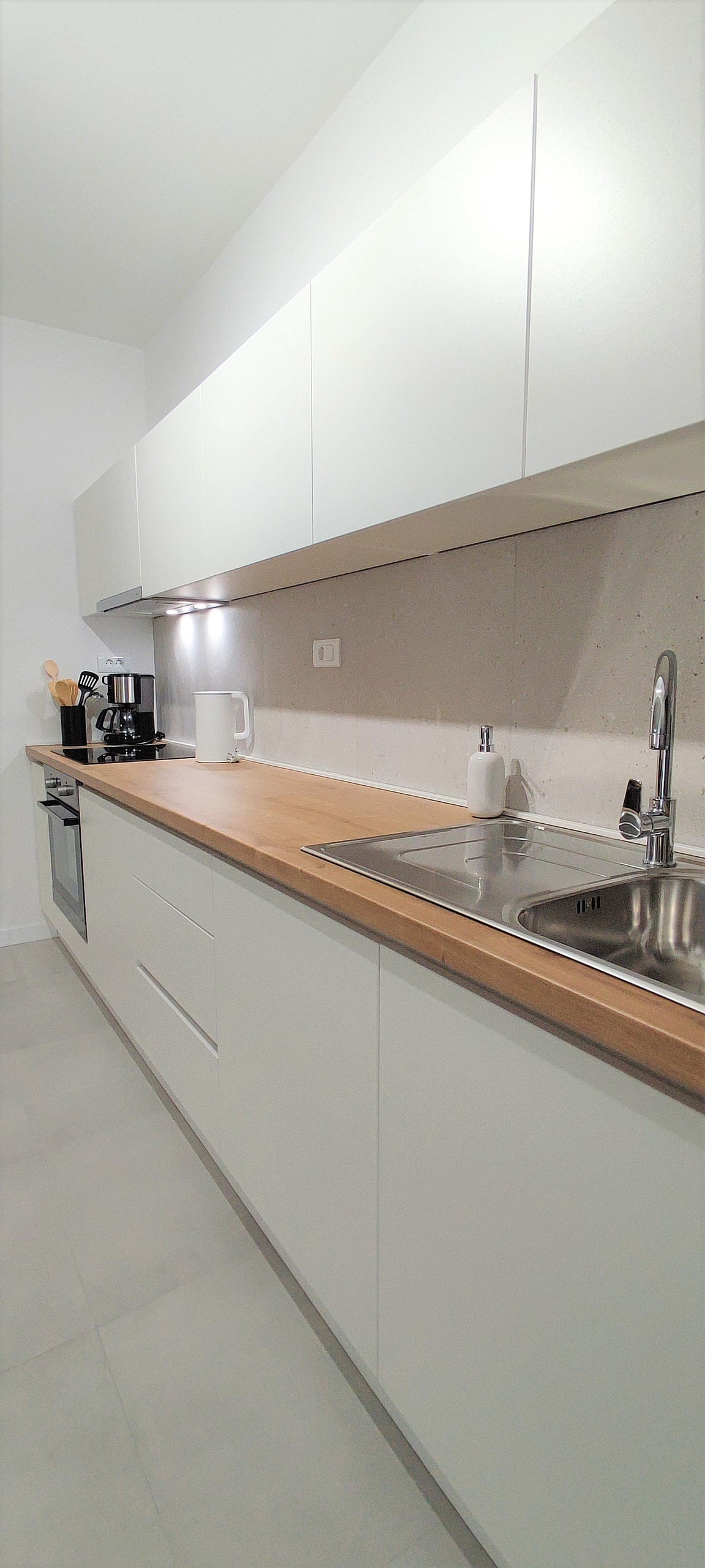 Apartament dwupoziomowy składa się z kuchni, jadalni i salonu, łazienki na parterze. Na piętrze znajduje się część sypialna, z której można wyjść na balkon. Z balkonu roztacza się piękny widok na centrum miasta. Część górnego piętra to hamak (siatka), w którym można się zrelaksować, poczytać książkę i zrobić kilka selfie.