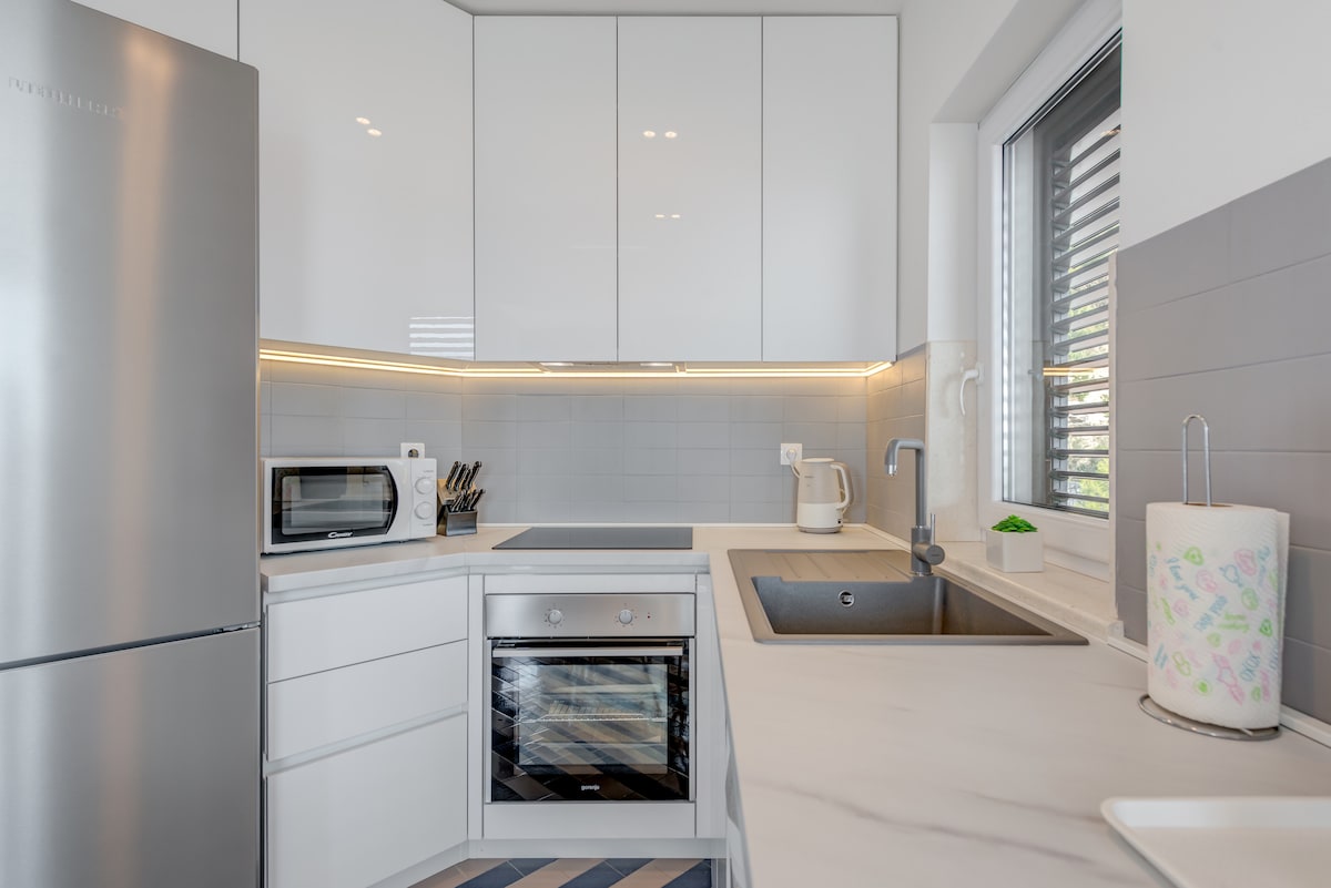 Witamy w Villa Amare, nowym, nowoczesnym i luksusowym ośrodku wypoczynkowym położonym w malowniczym mieście Kaštela. Ta wykwintna willa oferuje trzy przestronne apartamenty, z których każdy został starannie zaprojektowany, aby zapewnić najwyższy komfort i styl. Goście mogą cieszyć się orzeźwiającą kąpielą w basenie z jacuzzi, opalać się na tarasie lub przy basenie i korzystać z pełnej gamy udogodnień. Willa Amare znajduje się w doskonałej lokalizacji, w odległości krótkiego spaceru od licznych dziewiczych plaż i uroczego deptaka.