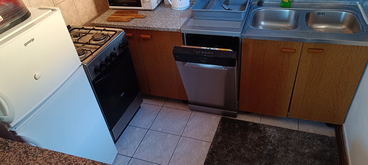 Dobrodošli u naš novouređeni apartman smješten u mirnoj ulici, savršen za opuštajući boravak, a ipak nadomak svih gradskih atrakcija. Apartman nudi udobnu spavaću sobu, idealnu za parove ili obitelji, dok slatka, potpuno opremljena kuhinja omogućuje pripremu domaćih obroka. Uživajte na prostranoj privatnoj terasi, savršenoj za jutarnju kavu ili večernje opuštanje. Savršen spoj udobnosti, praktičnosti i mira – radujemo se vašem dolasku!