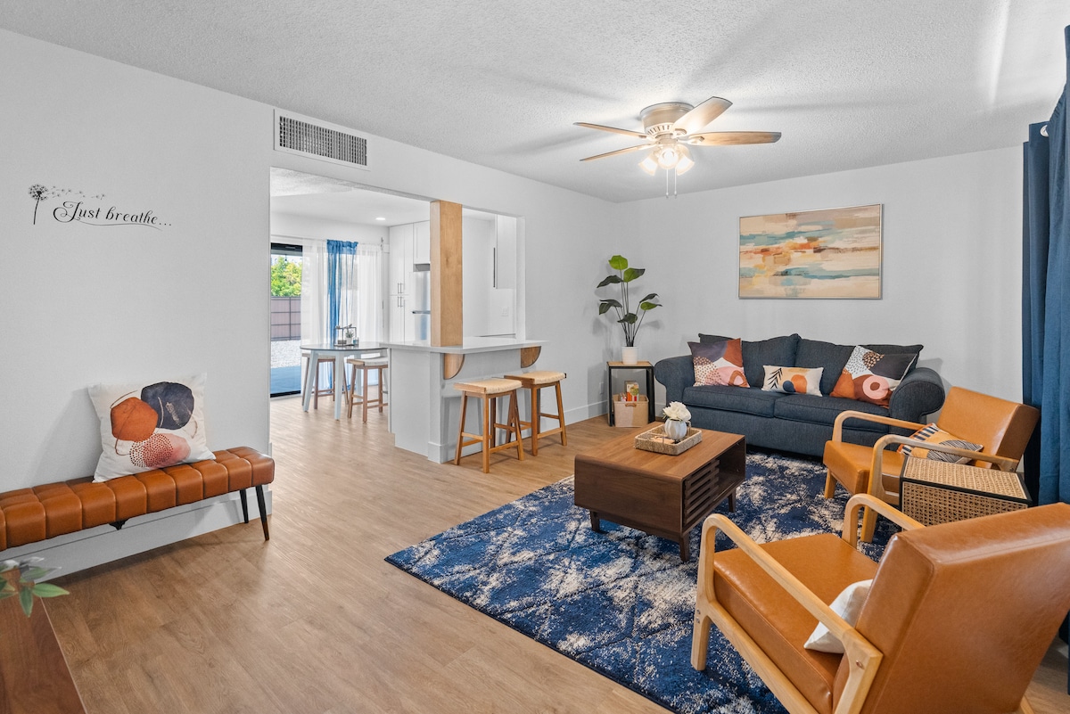 Nasza starannie odnowiona oaza z połowy wieku szczyci się szczegółami architektonicznymi zarówno wewnątrz, jak i na zewnątrz. Najlepsze cechy kryjówki Old Town 2B 2BA: ☆ Podgrzewany basen (dodatkowa opłata za ogrzewanie) ☆ Duży zadaszony taras z telewizorem ☆ Małe pole golfowe ☆ Domowe biuro/siłownia ☆ Niestandardowe dzieła sztuki ☆ 3 mile/8-10 minut jazdy do Starego Miasta South Scottsdale oferuje światowej klasy kuchnię, zakupy, golf, wiosenne treningi i ASU - idealne lądowisko na następną wycieczkę golfową, zakupy lub romantyczną ucieczkę na pustynię! **Imprezy niedozwolone.